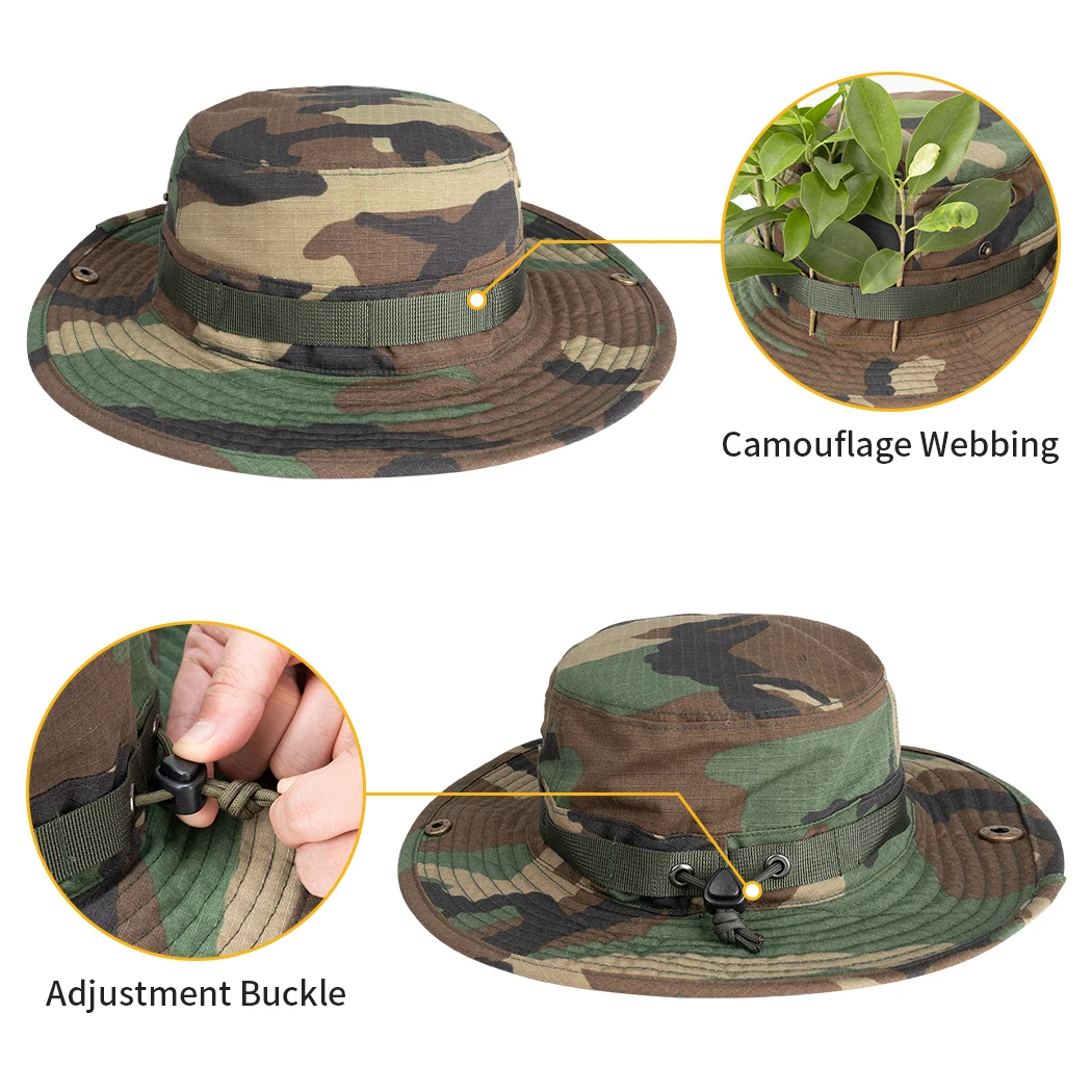 Correas Molle: con correas alrededor del sombrero para attc camo objetos como hojas y ramas en emboscada