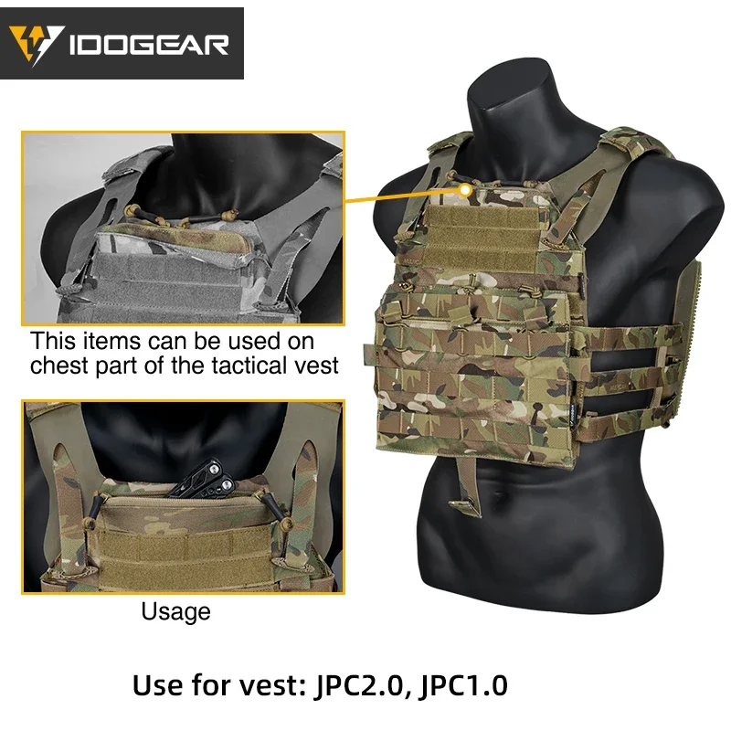 Inserto de tira de cremallera IDOGEAR para chaleco Combat JPC 1,0 JPC2.0 Accesorios de bolsillo con gancho y bucle Cremalleras dobles 5,9 "de longitud 2 paquetes