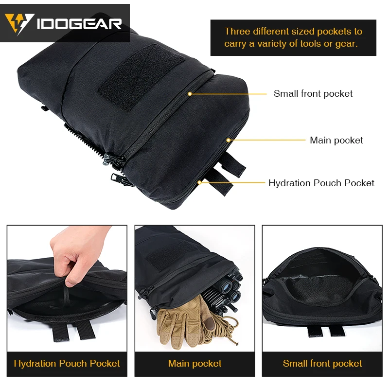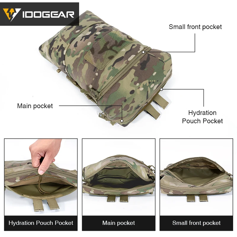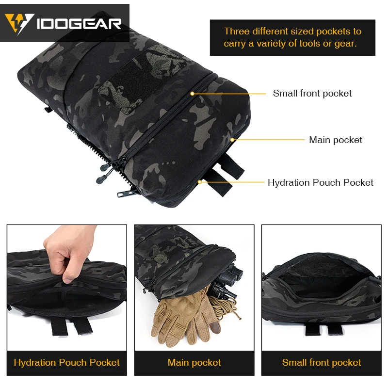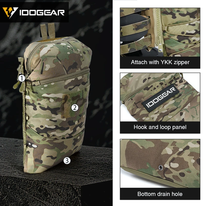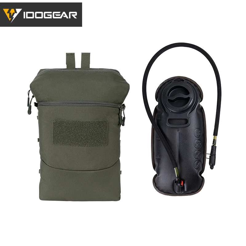 IDOGEAR Juego de bolsas de hidratación tácticas con tanque de agua de TPU de 2L YKK con cremallera inferior y orificio de drenaje Mochila de agua táctica 35121