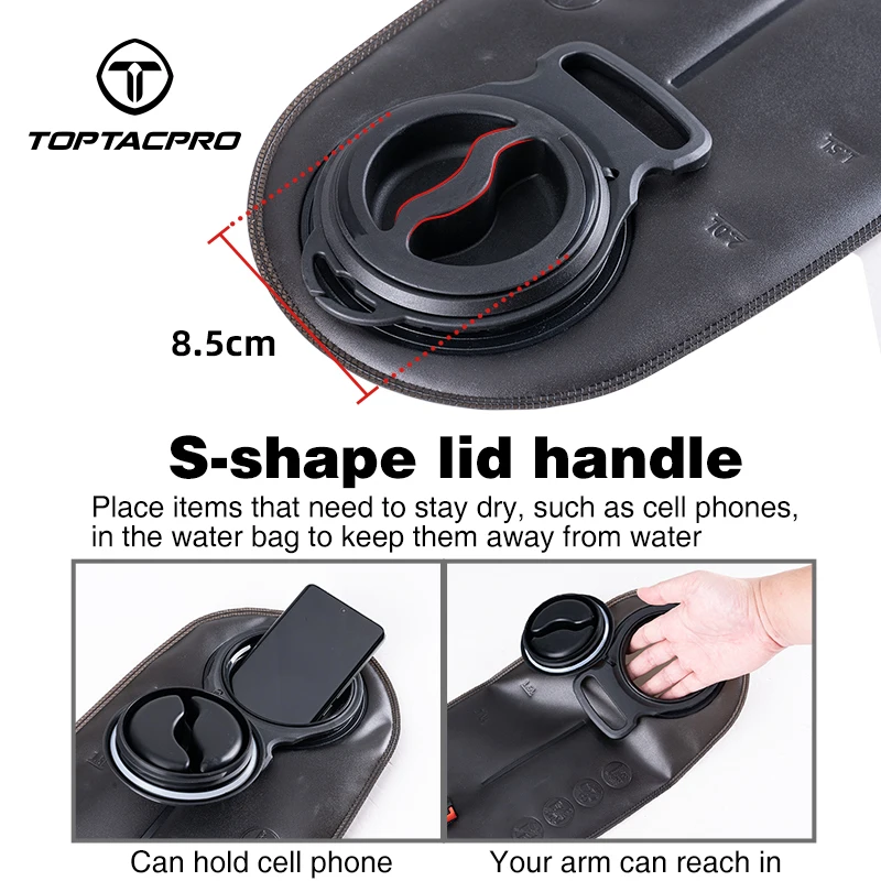 1. Compartimento con un sello de gancho y bucle en la parte superior que sostiene la vejiga de agua (la cuchilla NO está incluida)