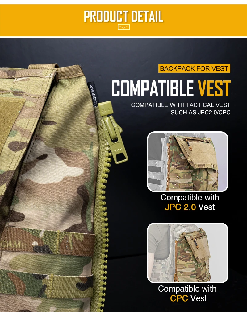 IDOGEAR Tactical Zip-on Panel Pouch Mochila Plate Carrier Bag para CPC AVS JPC2.0 Chaleco
