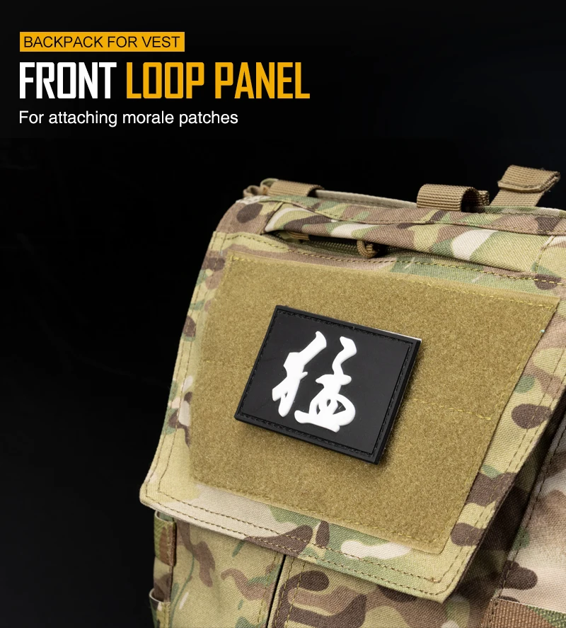 Diseño de correas Molle en la parte inferior frontal y ambos lados para sus usos multifuncionales