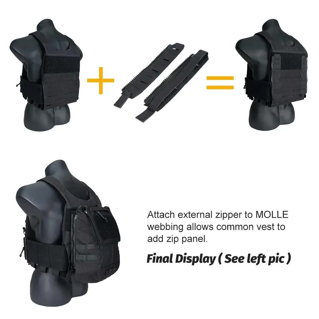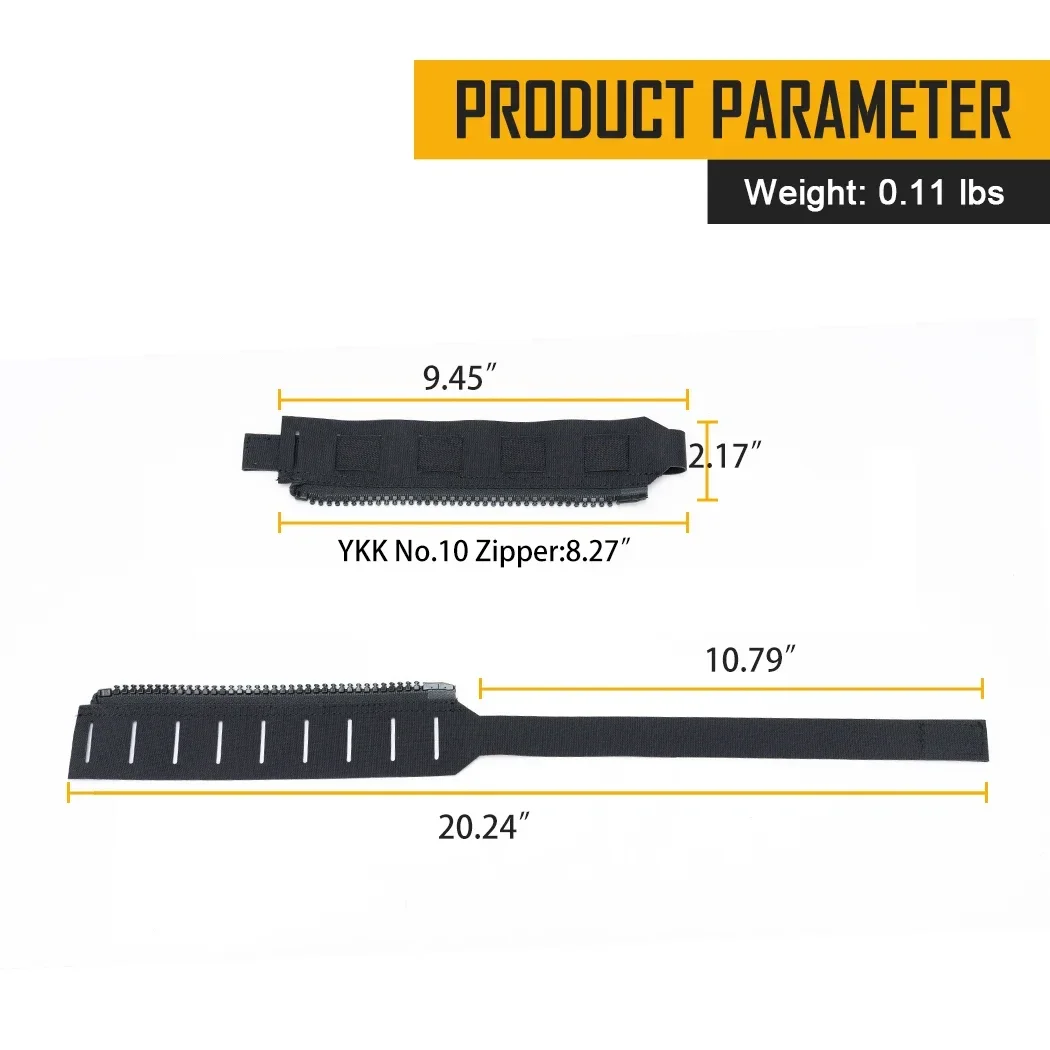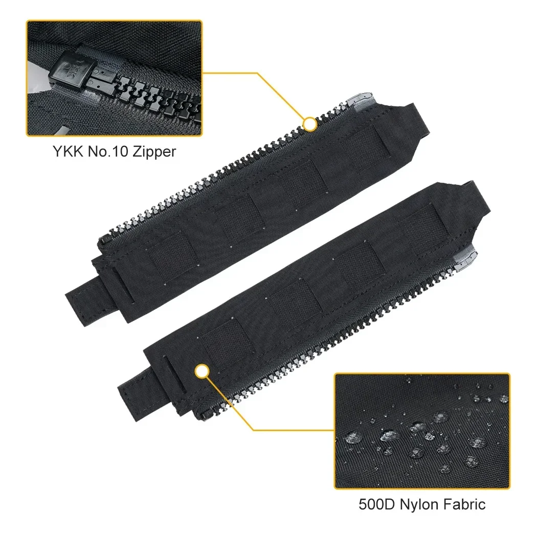 Diseño compatible con cremallera YKK10:equipado con YKK 10# cremalleras en ambos lados, lo que permite combinar cómodamente con chalecos tácticos con 10 incorporados# cremalleras; Si el chaleco táctico no viene con cremallera, se puede conectar usando la cremallera 3950 incluida para garantizar la compatibilidad.ty.