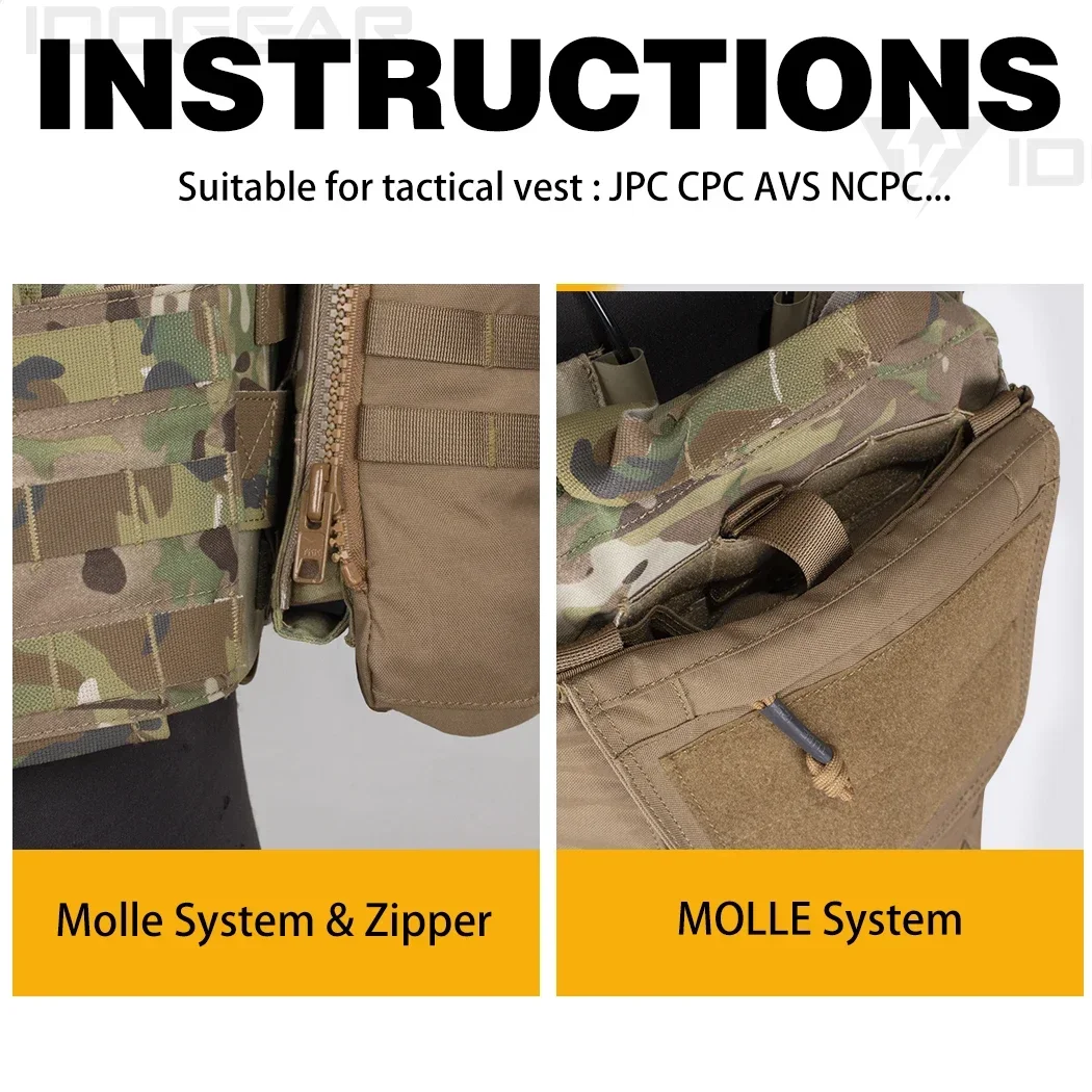 IDOGEAR Panel táctico con cremallera en bolsa, mochila, bolsa transportadora de placa para chaleco CPC AVS JPC2.0 con 10#Cremallera 3531