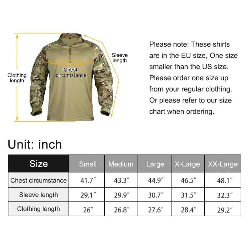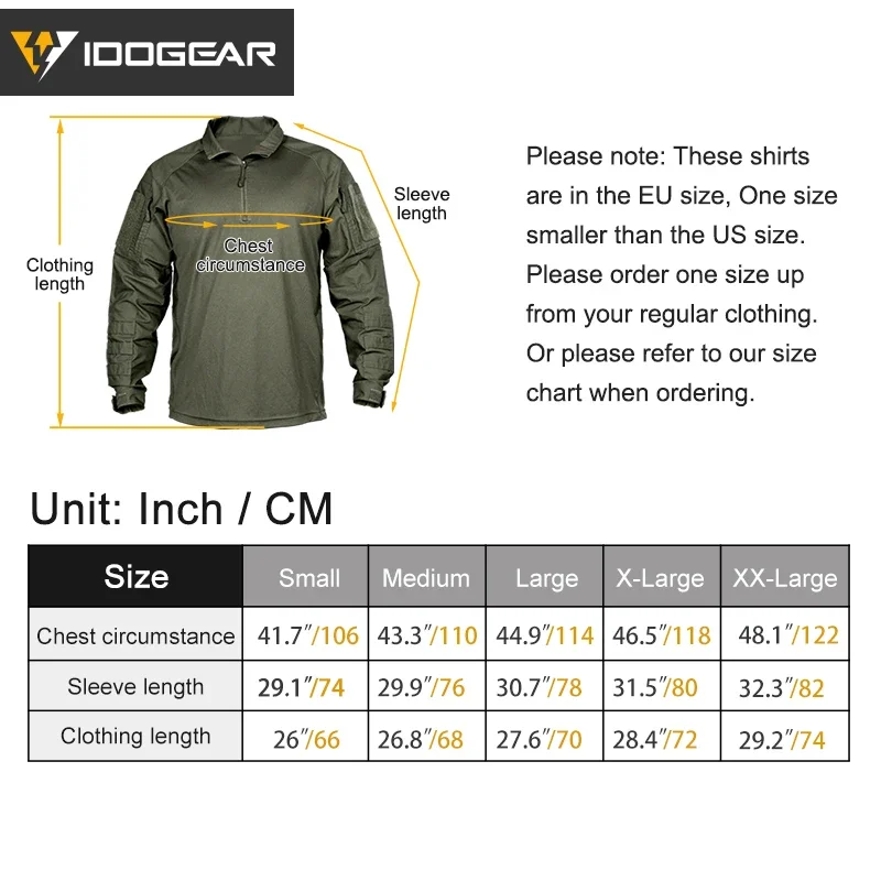 *Tenga en cuenta: Las camisas de IDOGEAR son un poco más grandes. Comuníquese con el servicio de atención al cliente de IDOGEAR si le preocupa la selección de tallas.