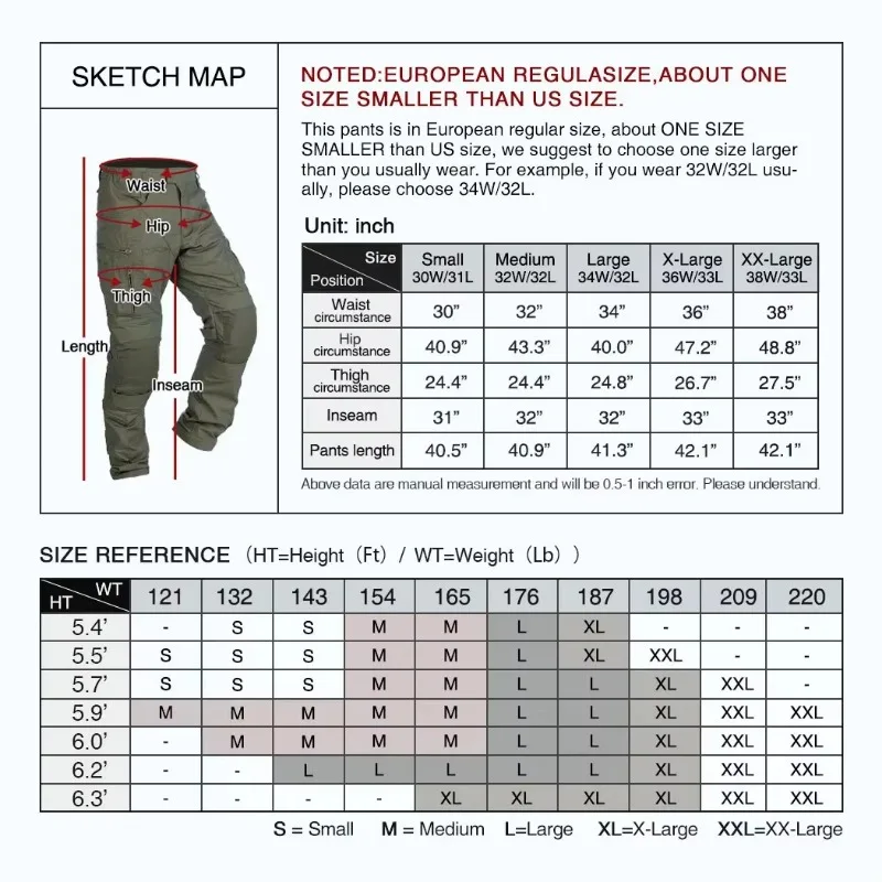 *Tenga en cuenta: Los pantalones de IDOGEAR son un poco más grandes. Comuníquese con el servicio de atención al cliente de IDOGEAR si le preocupa la selección de tallas.