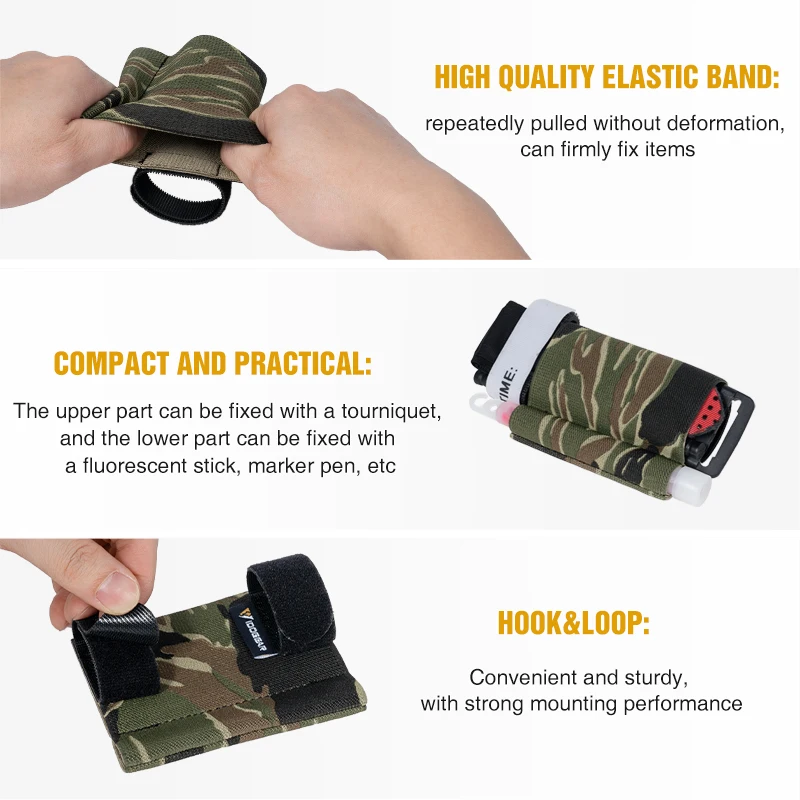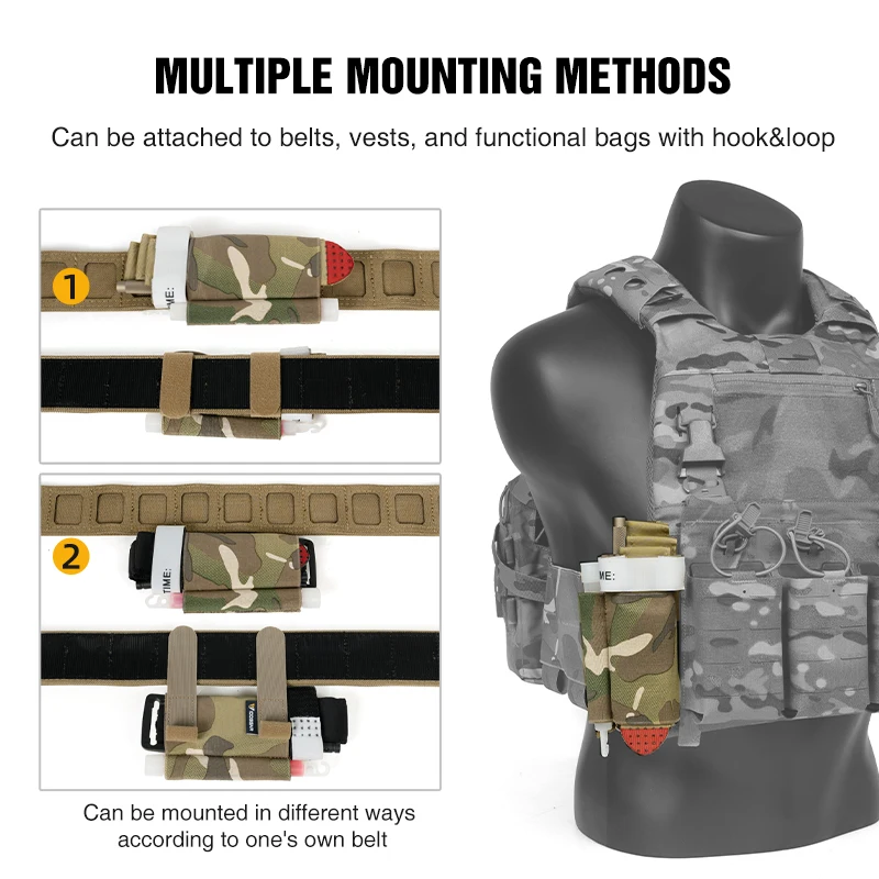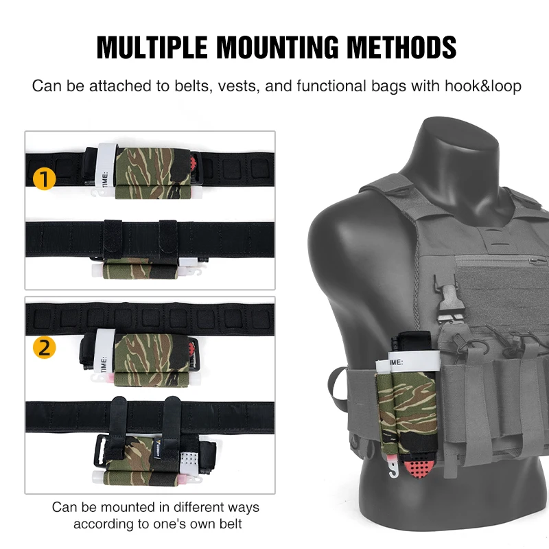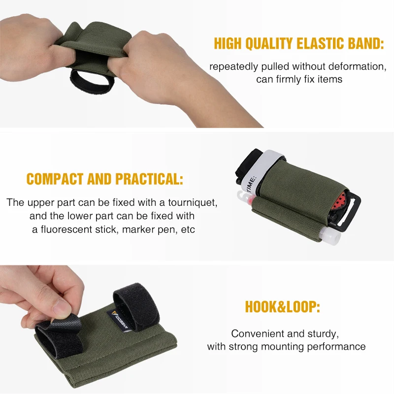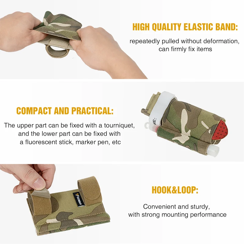 IDOGEAR Soporte de torniquete táctico para cinturón Banda elástica Gancho y bucle Soporte de torniquete multifunción para cinturón Accesorio táctico 3958
