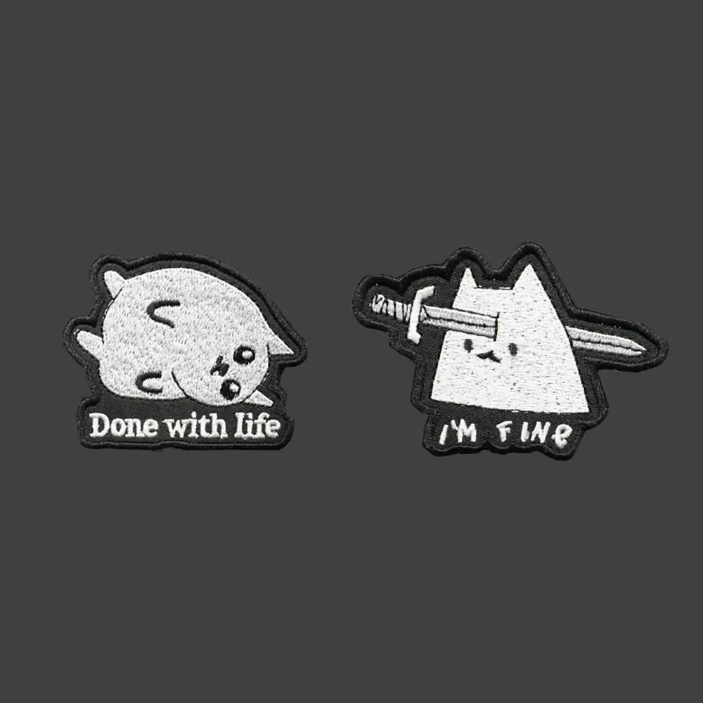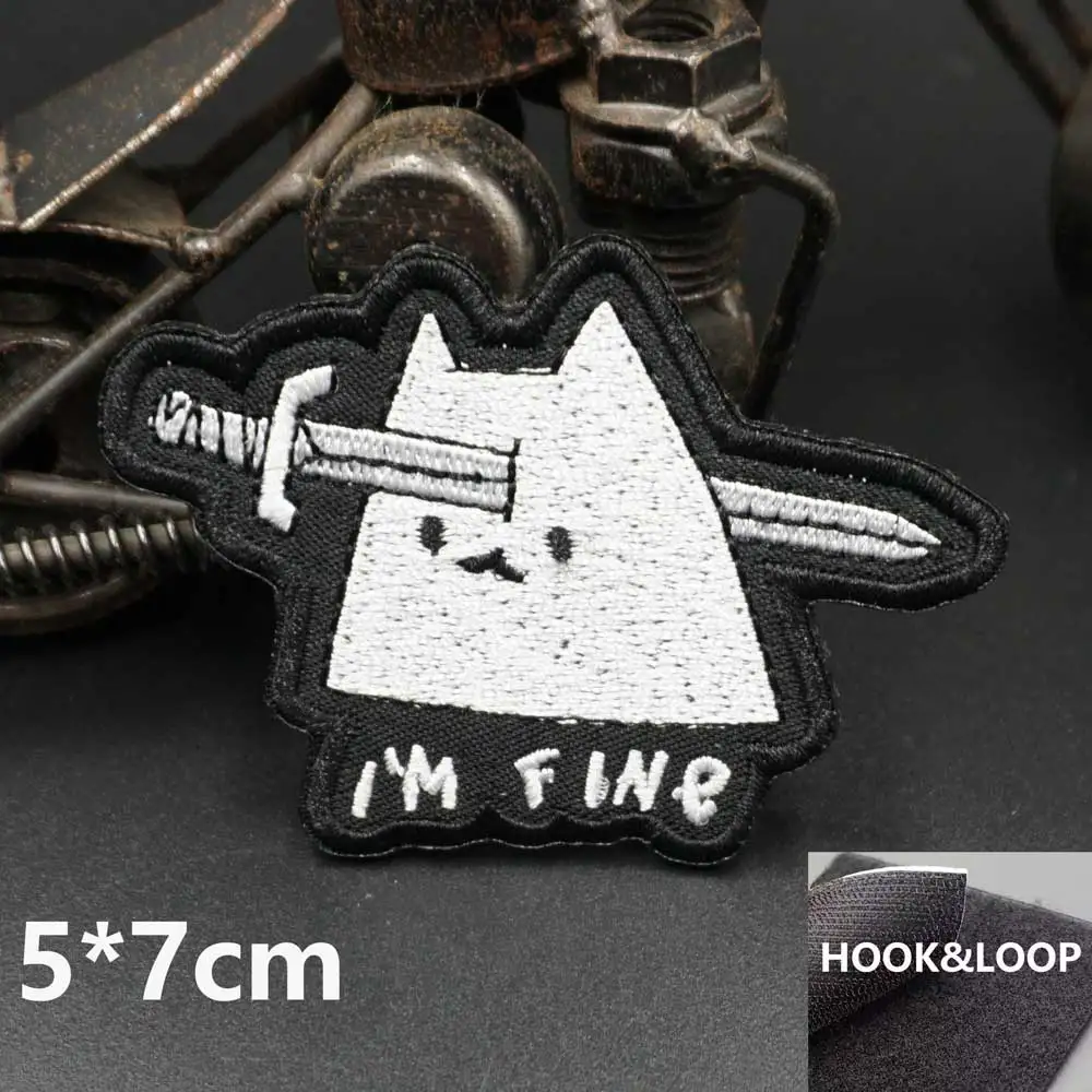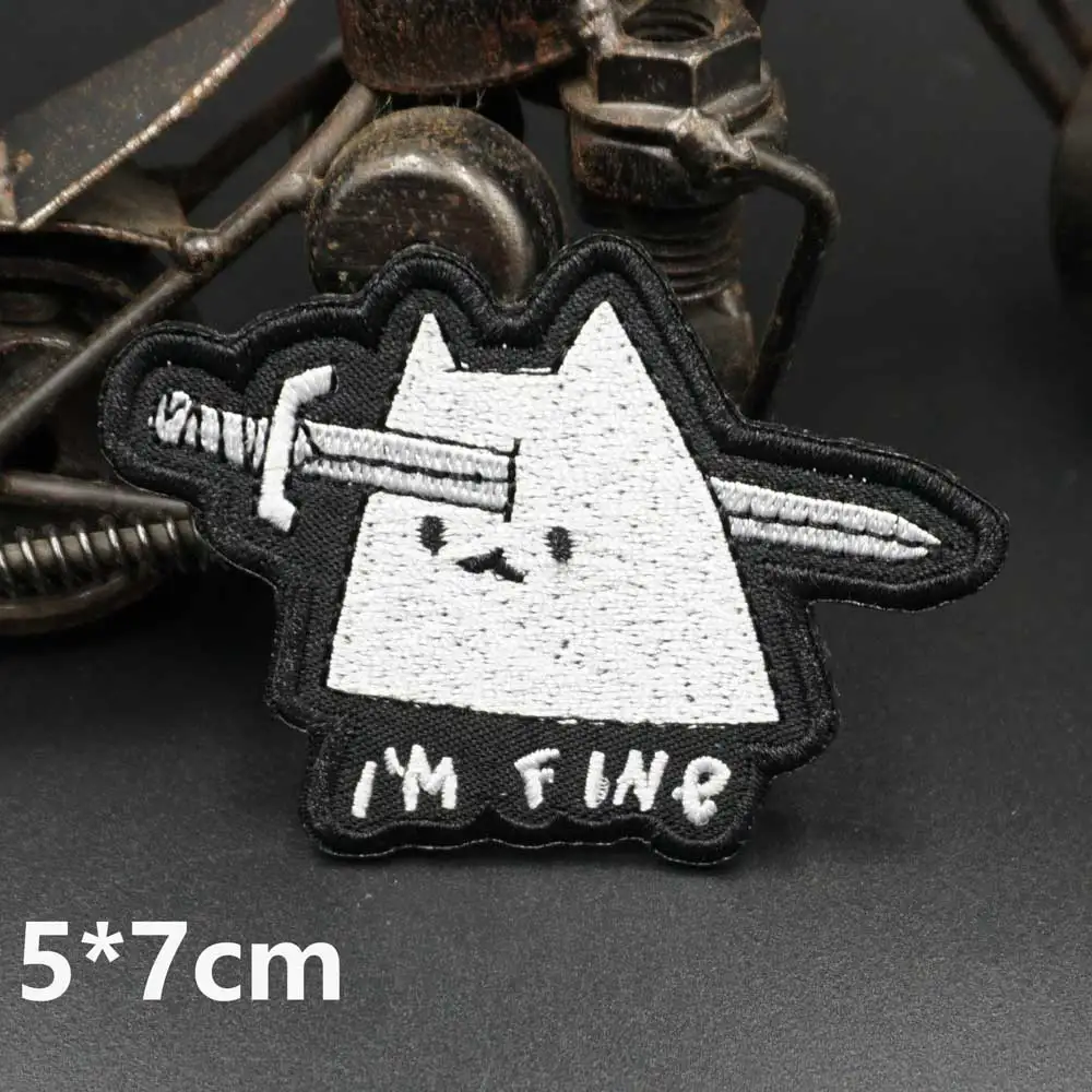 I'm Fine parches bordados de gato divertido con respaldo de gancho para planchar para ropa
