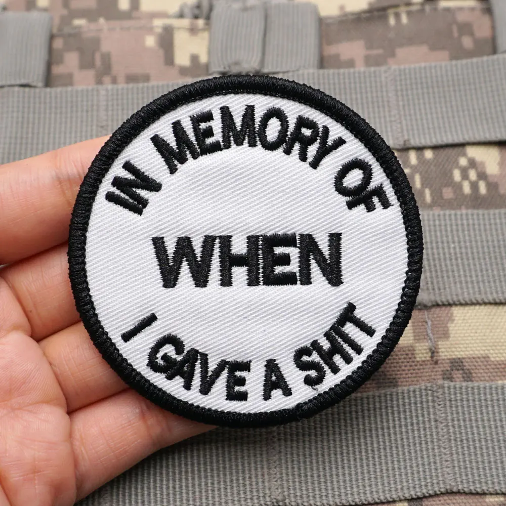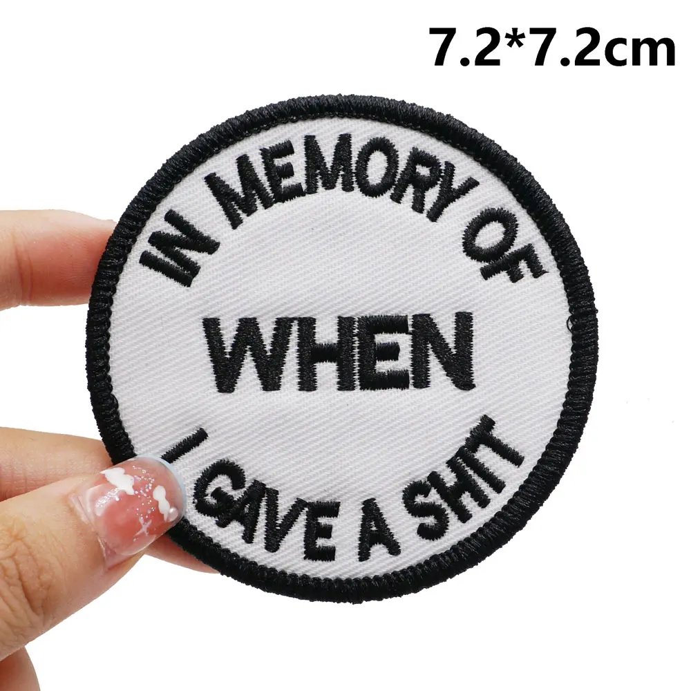 IN MEMORY OF WHEN I GAVE A SHIT parches bordados apliques etiqueta de costura punk biker Band Rock ropa insignias con gancho trasero