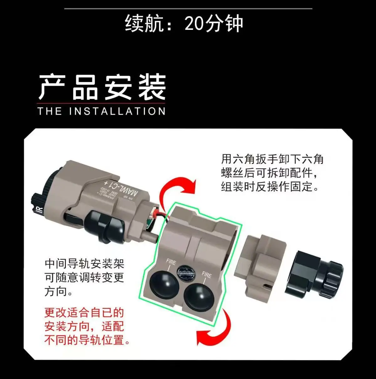 Indicador láser táctico de nailon y metal MAWLC1 - Montaje en riel Picatinny de 20 mm con caja de batería multifunción, láser rojo eléctrico para operaciones tácticas y de caza