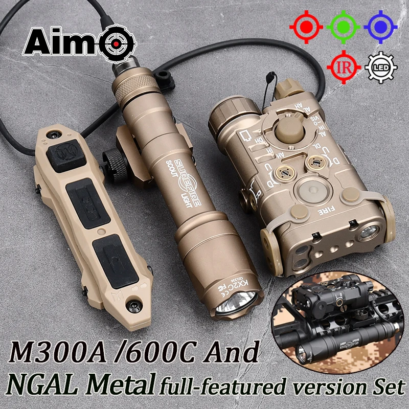 Indicador láser táctico de Metal NGAL, punto rojo, verde, azul, mira láser PEQ15 IR, ajuste de 20mm, Picatinny Surefir M300 M600, luz para armas