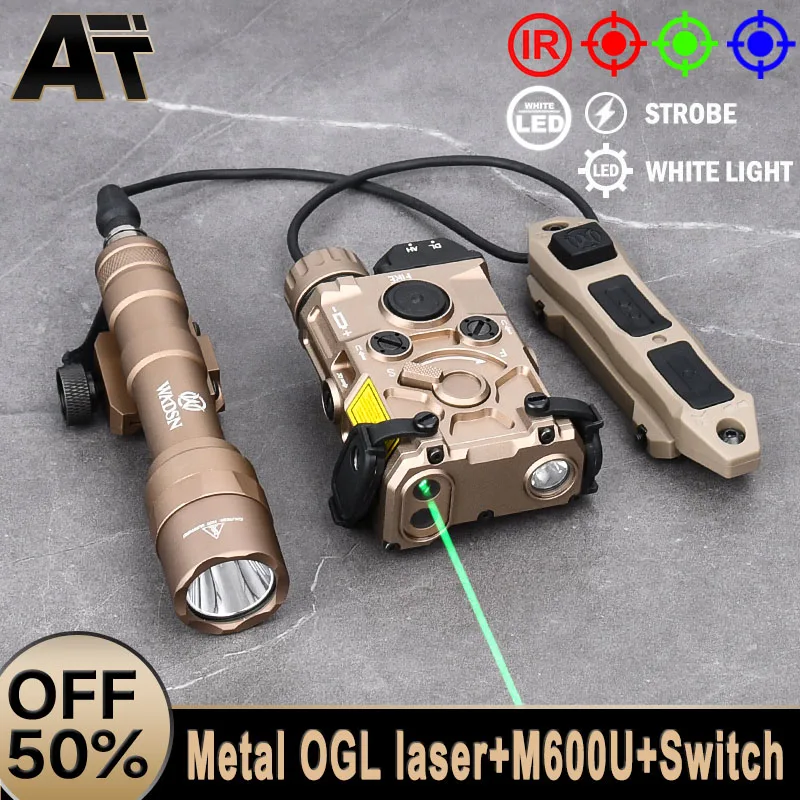 Indicador láser táctico de Metal OGL, linterna LED blanca, luz de explorador de caza, traje de interruptor de Control Dual, rojo, verde, azul, M600/M300