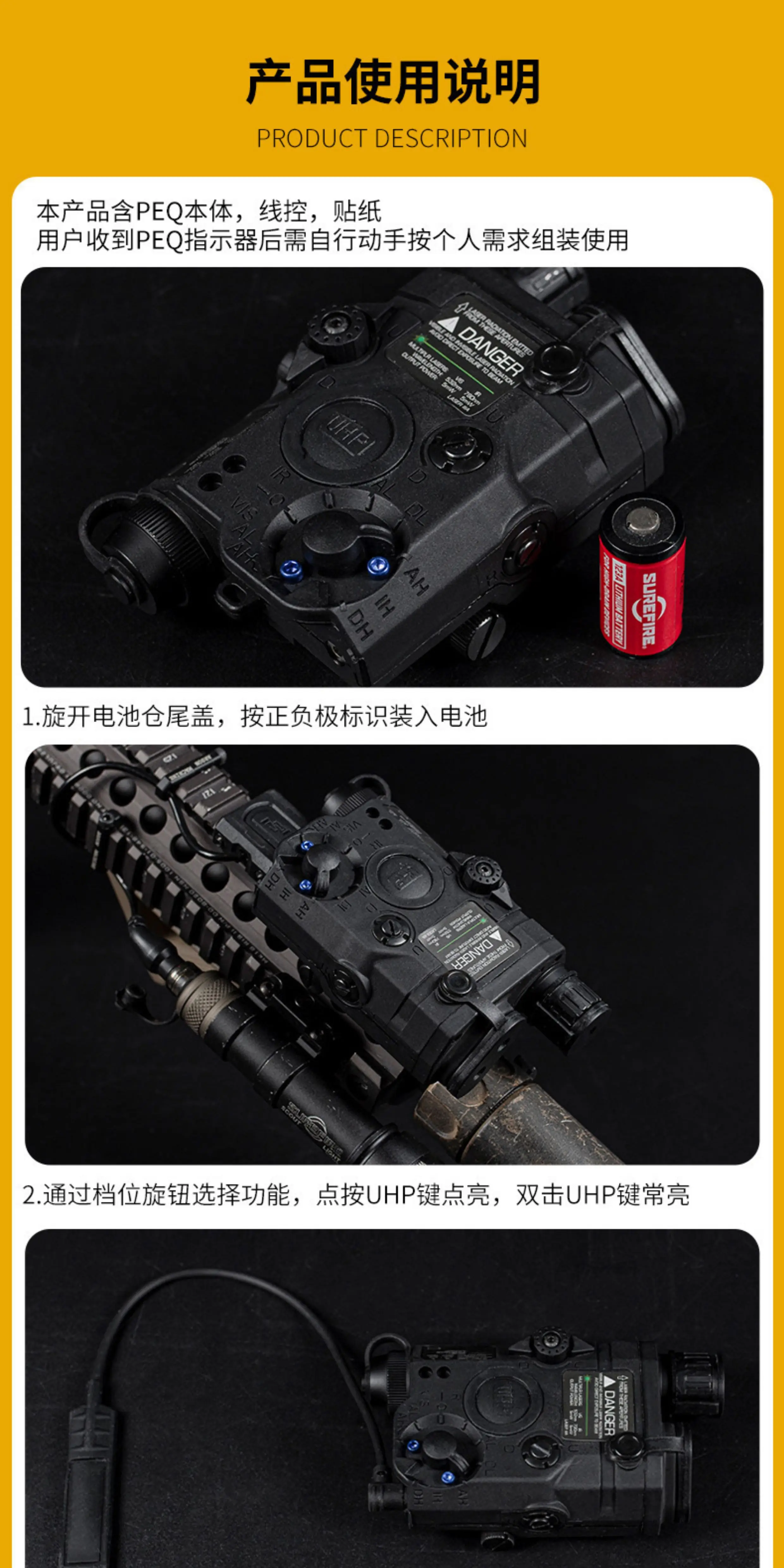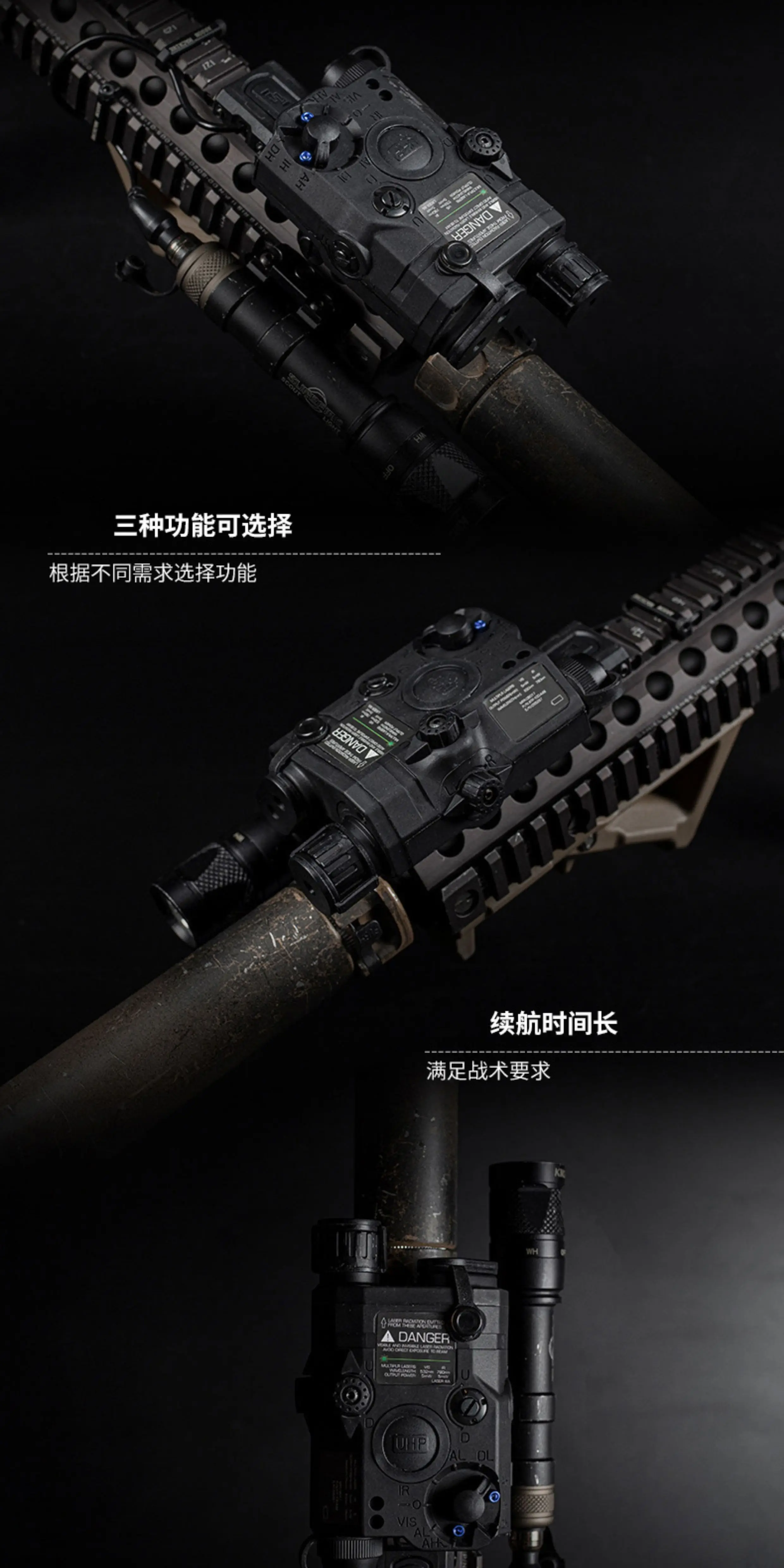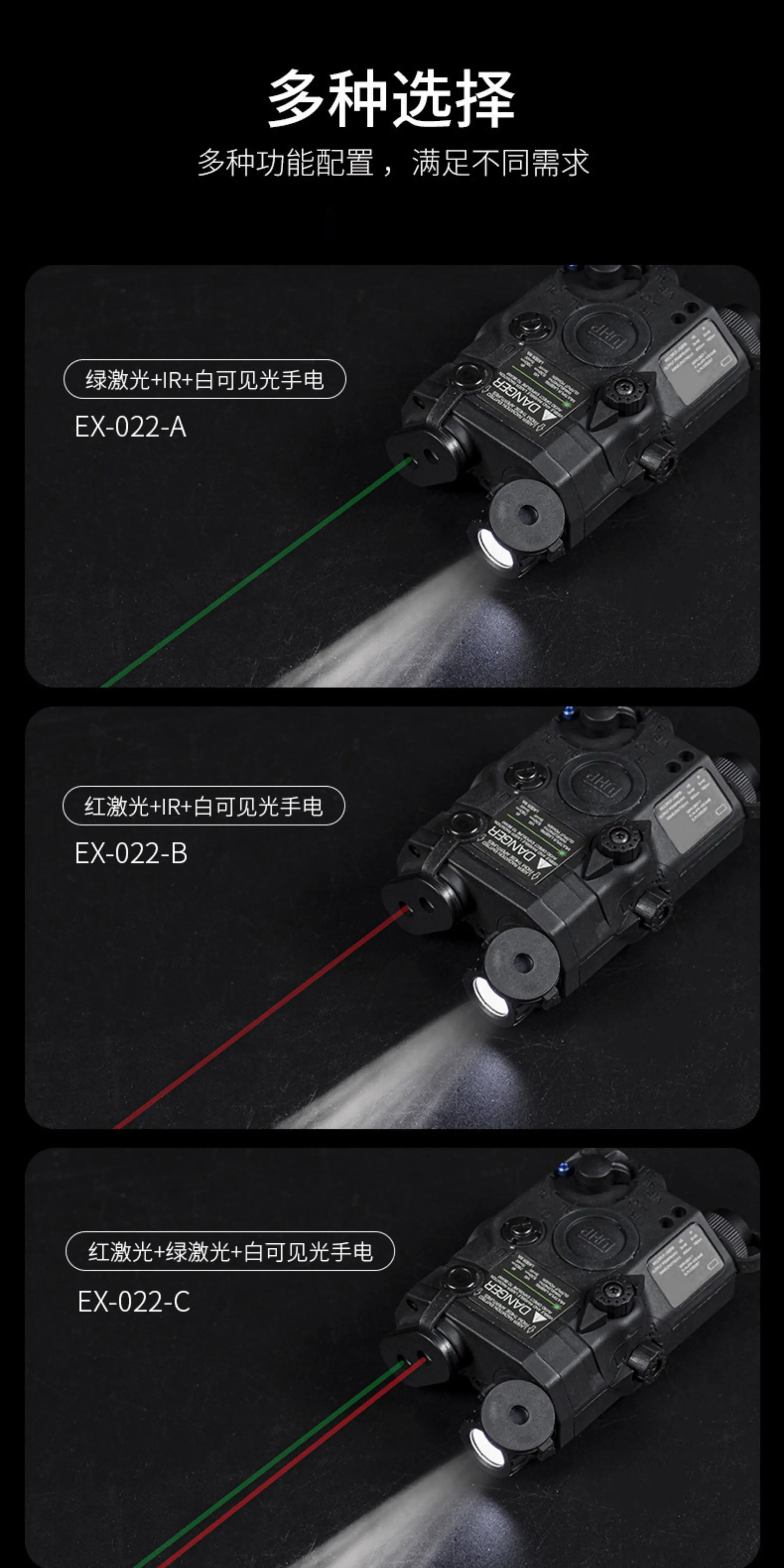 Este es un indicador de equipo multifuncional para escenarios tácticos, que integra funciones láser, infrarroja e de iluminación.La información principal es la siguiente: