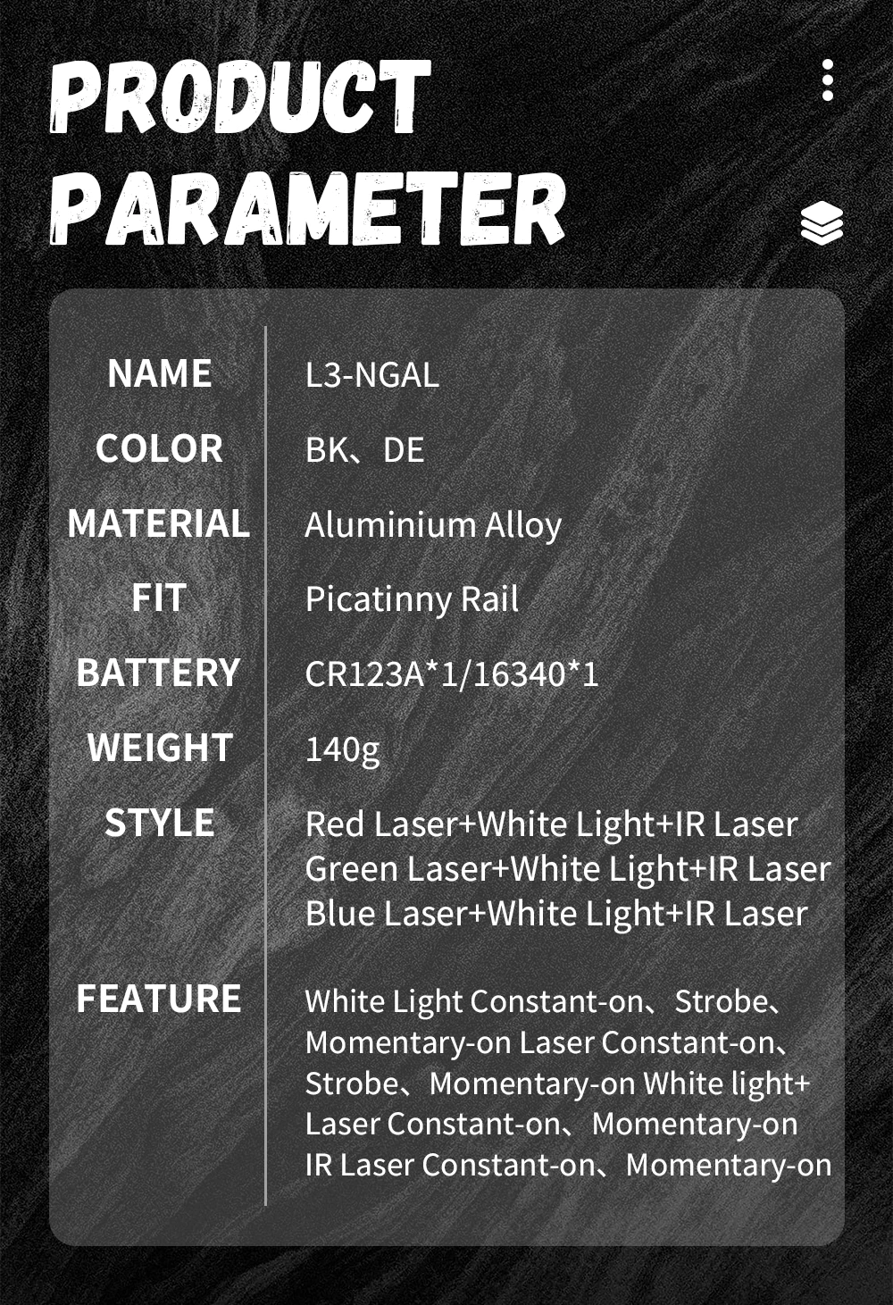 Indicador táctico de Metal NGAL, luz roja, verde, azul, Surefir M300A, M600C, luz de explorador de caza con interruptor de Control Dual AXON, apto para riel de 20MM