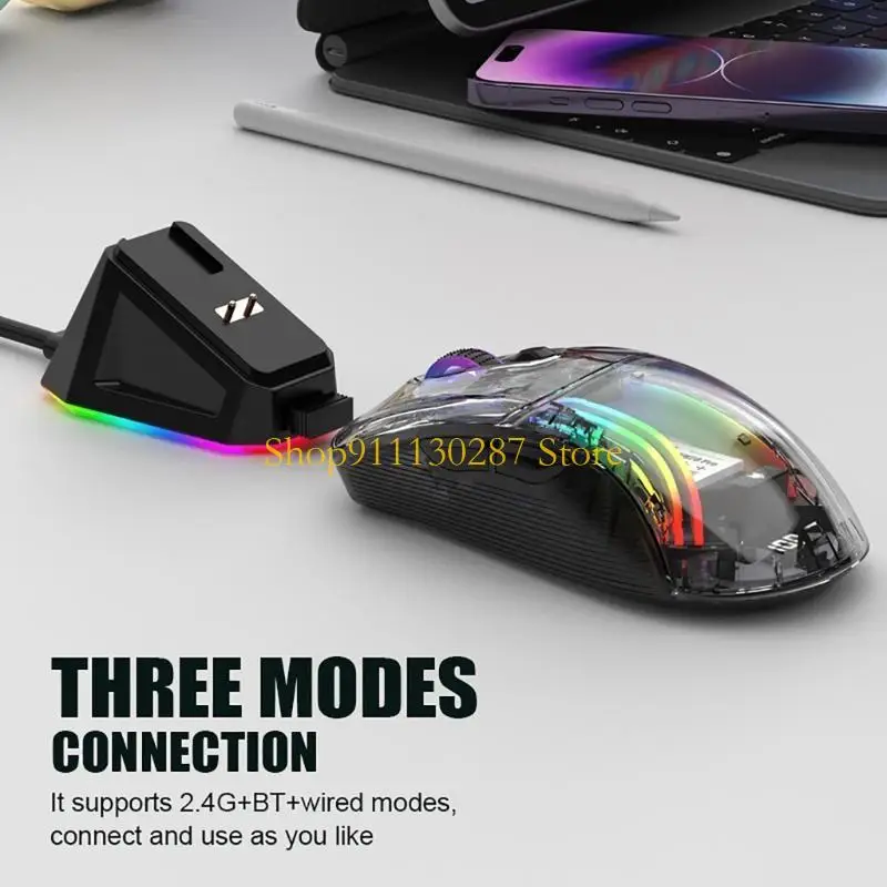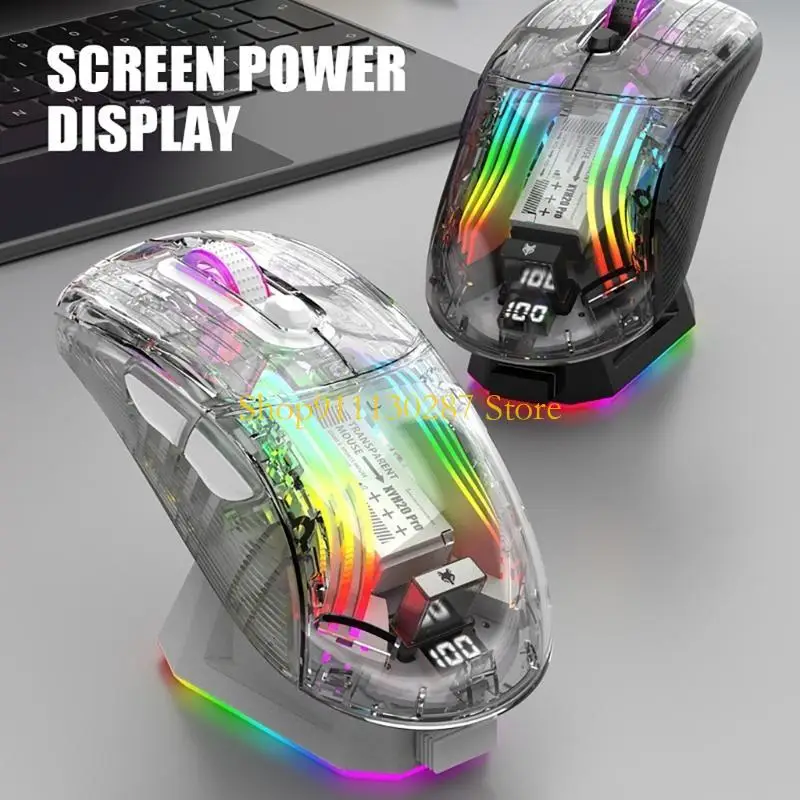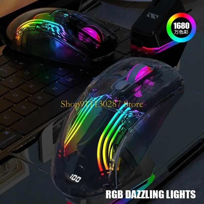 Unleash your gaming potential with this (1 set) Cord Gaming Mouse, featuring 2.4G connection, adjustable DPI, base, digital display, silence buttons, and customizable lighting.