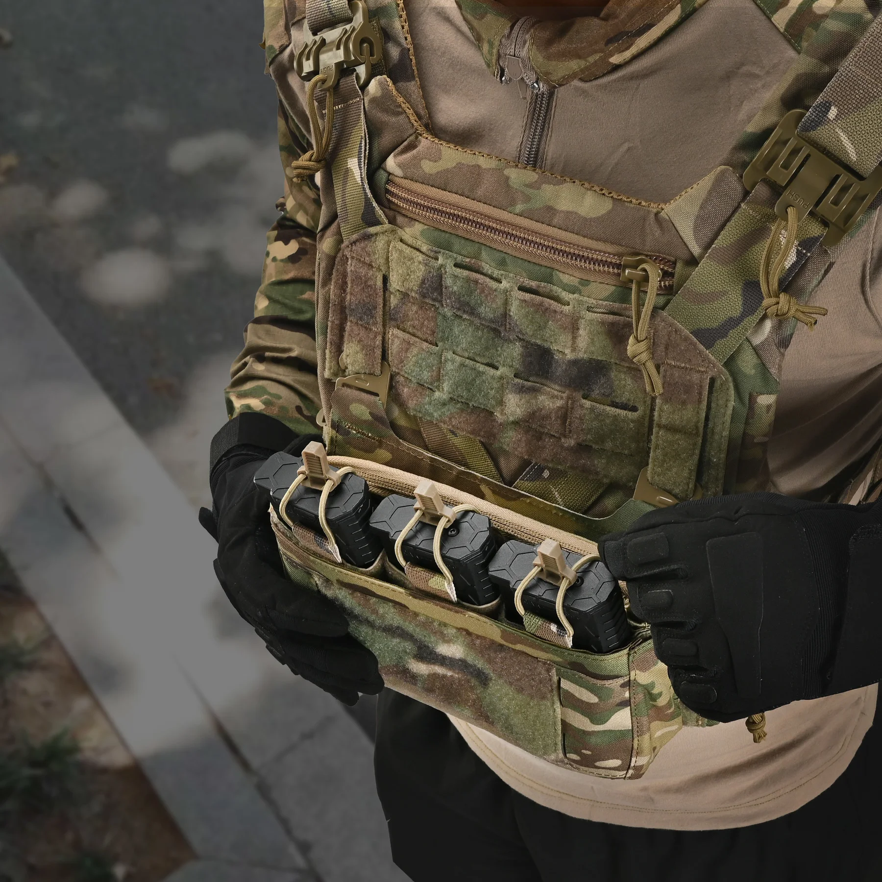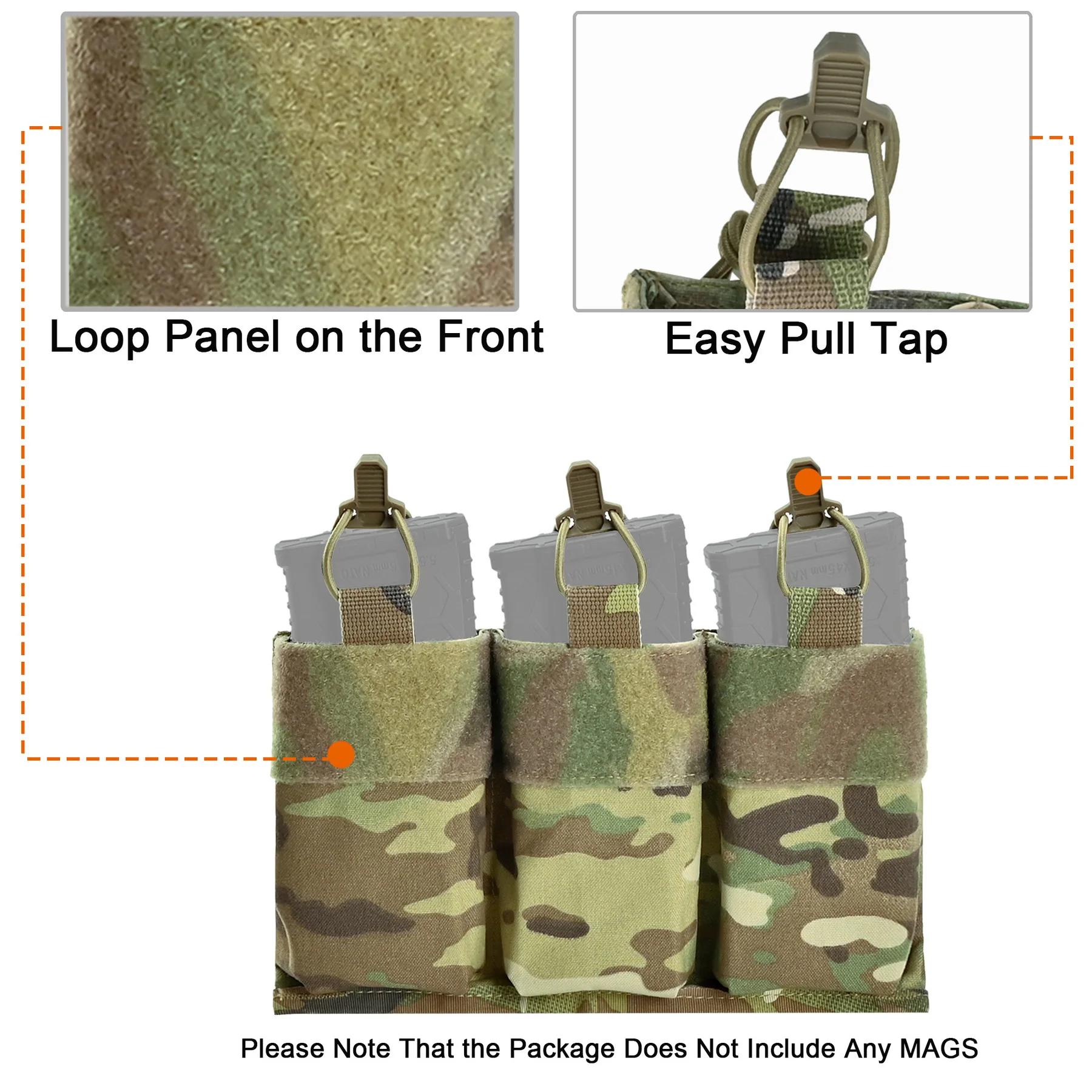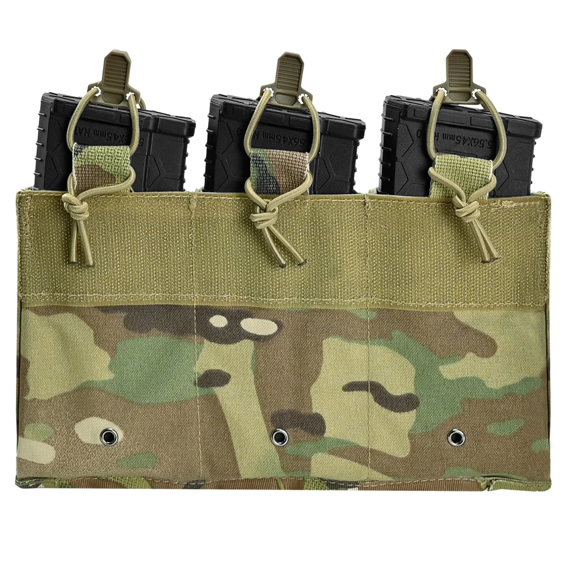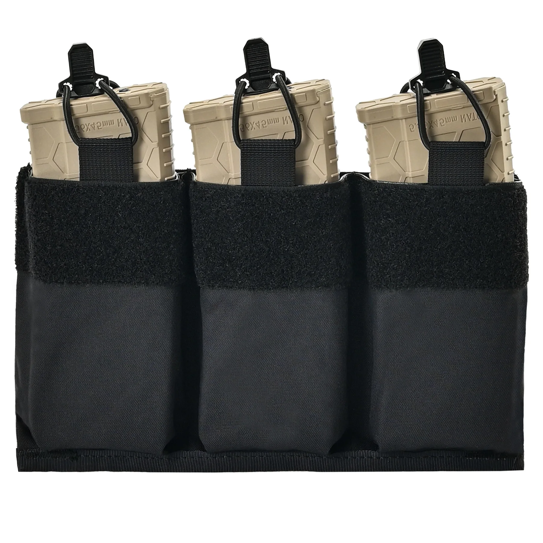 【Convenient kangaroo mag pouch insert】 The Triple Mag Kangaroo insert is equipped with a convenient pull tab and an elastic shock cord kit, ensuring effective magazine retention and easy access to magazines
