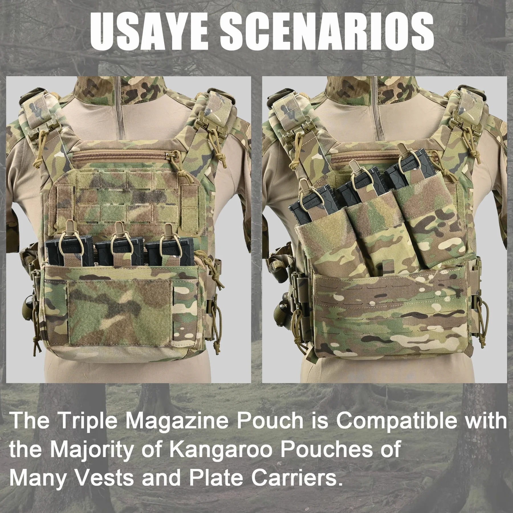 【Versatile Kangaroo Insert Pouch】 The Rifle MAG Pouches are designed to hold three 5.56×45mm caliber rifle magazines, like M4/AR-15 Magazines,offering an efficient way to transport extra ammunition without the need for additional pouches or accessories
