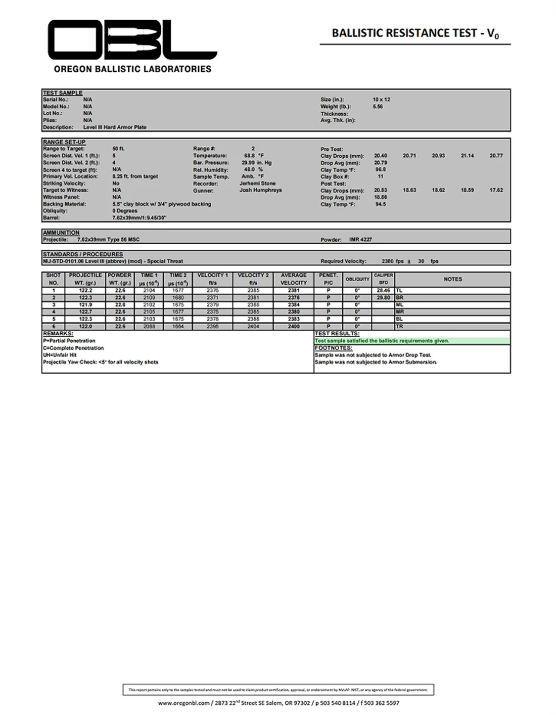 Bueno para resistir balas AK47 7,62mm x 39mm LC/MSC / M193 (Núcleo de plomo de 5,56x45mm), no puede proteger contra balas AK47 API/SS109/M855.