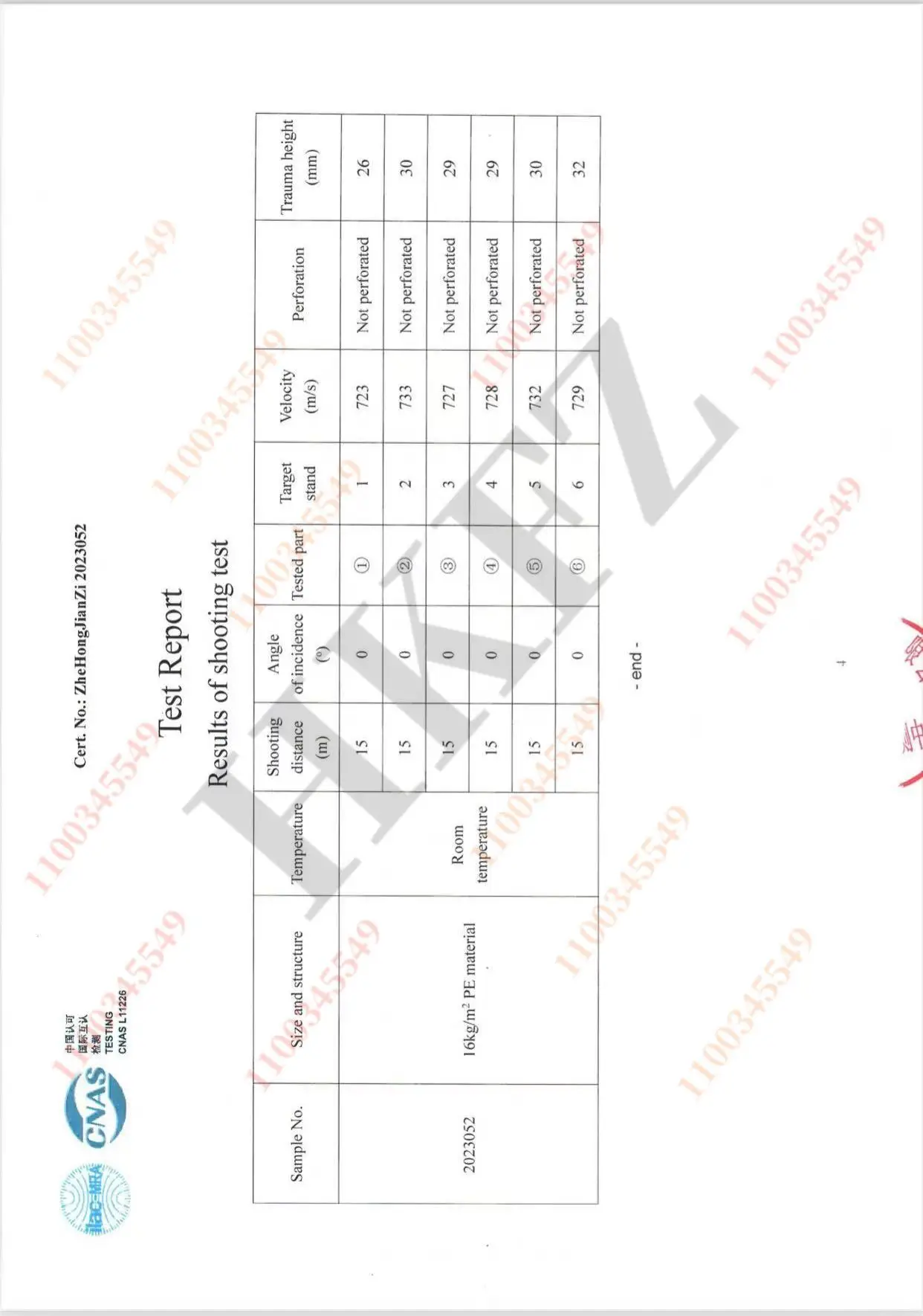 Armor Type:UHMW-PE (High density ultra-high molecular weight polyethylene