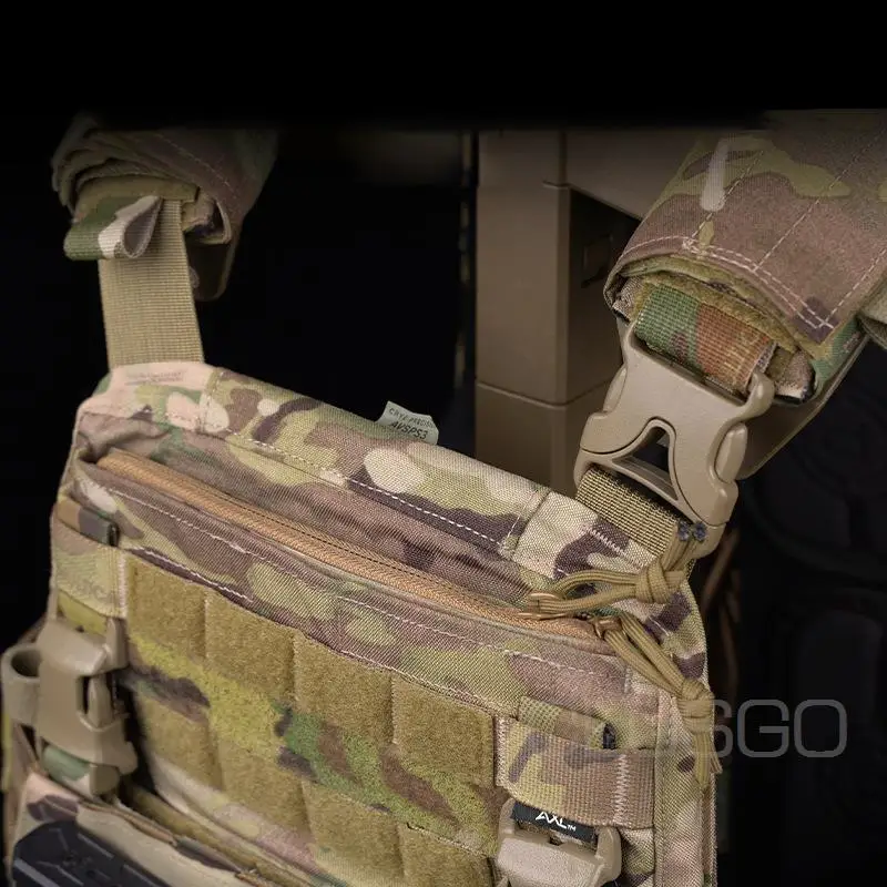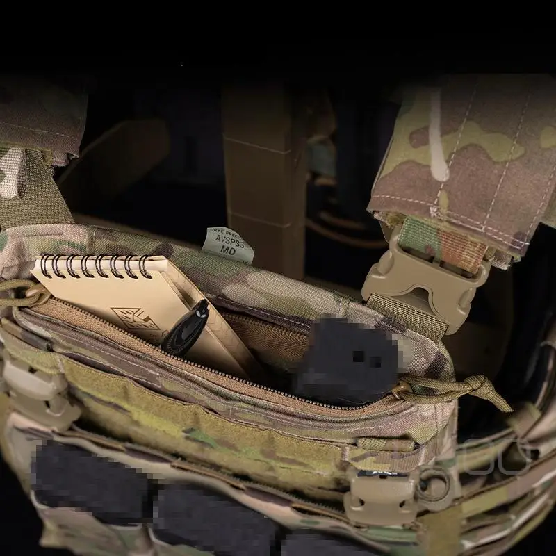 - Agrega la cremallera a la bolsa de administración incorporada del soporte de placa Crye AVS.
