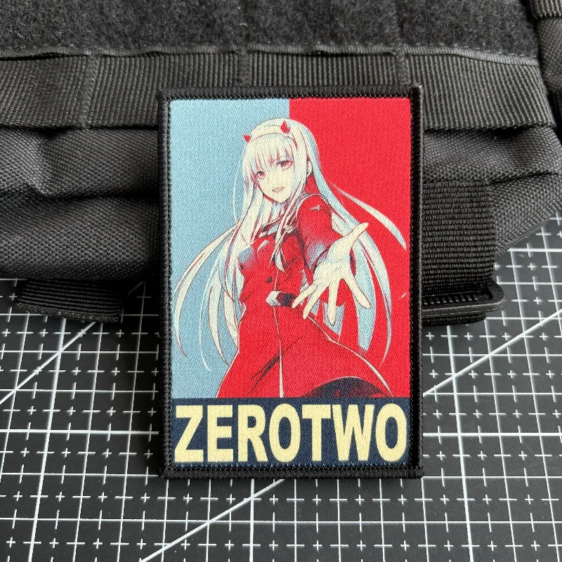 Anime Girls Zero Two Morale Badge DARLING in The FRANXX Character Patch Hook and Loop Printing Tactical Backpack Sticker