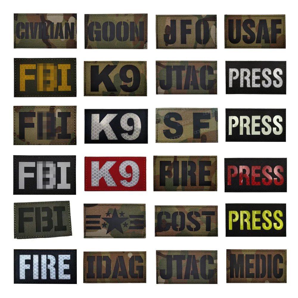Diseño: Palabras en inglés PRESS, MEDIC, SF, USAF, K9, FIRE, brazalete con pasta para ropa