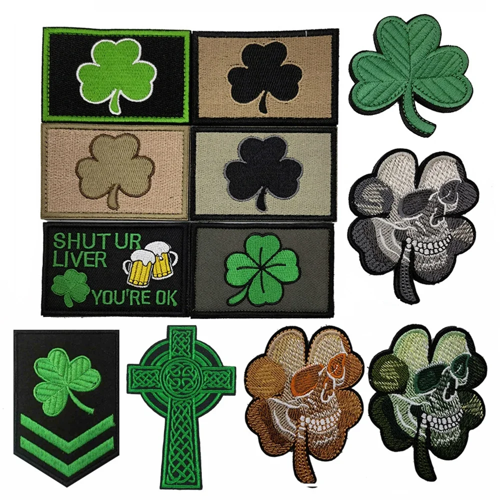 Calavera flor bordado insignia personalidad trébol parche militar Sewable gancho y bucle al aire libre mochila ropa calcomanías decorativasCaracterísticas del productoLos accesorios de personalidad de la ropa se pueden pegar en ropa, mochilas, sombreros y otros productos, DIY personalizado. Demuestra que eres diferente.