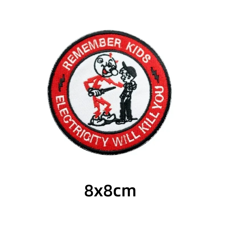 RECUERDE A LOS NIÑOS, manténgase a salvo y lejos de la electricidad Insignia de moral Parches bordados Equipo táctico al aire libre Pegatinas para mochila