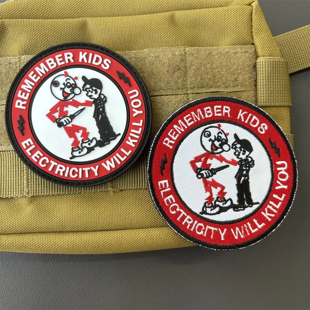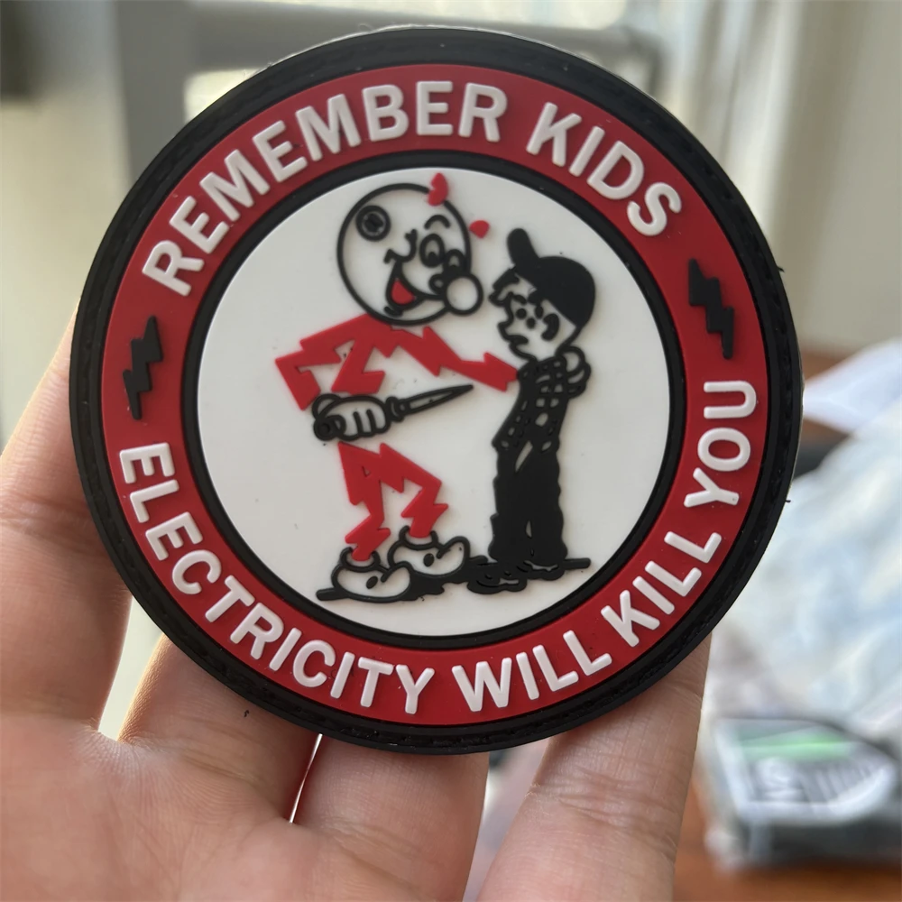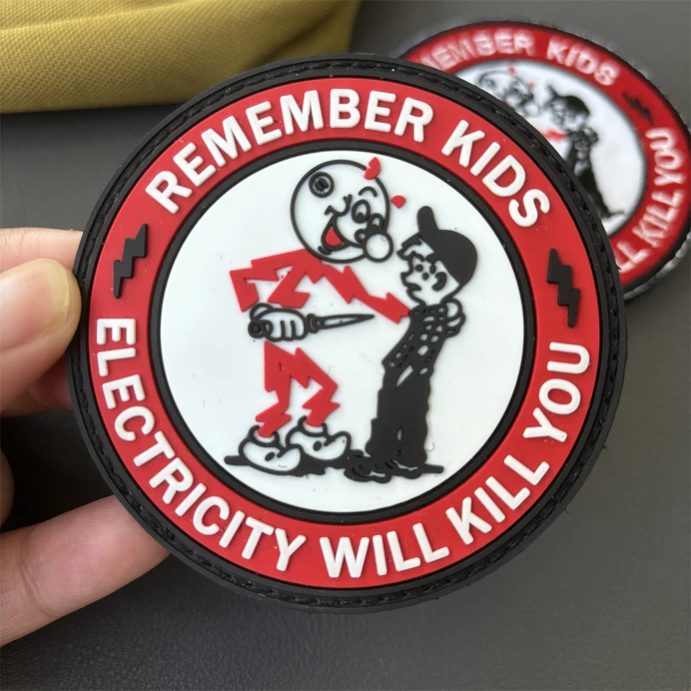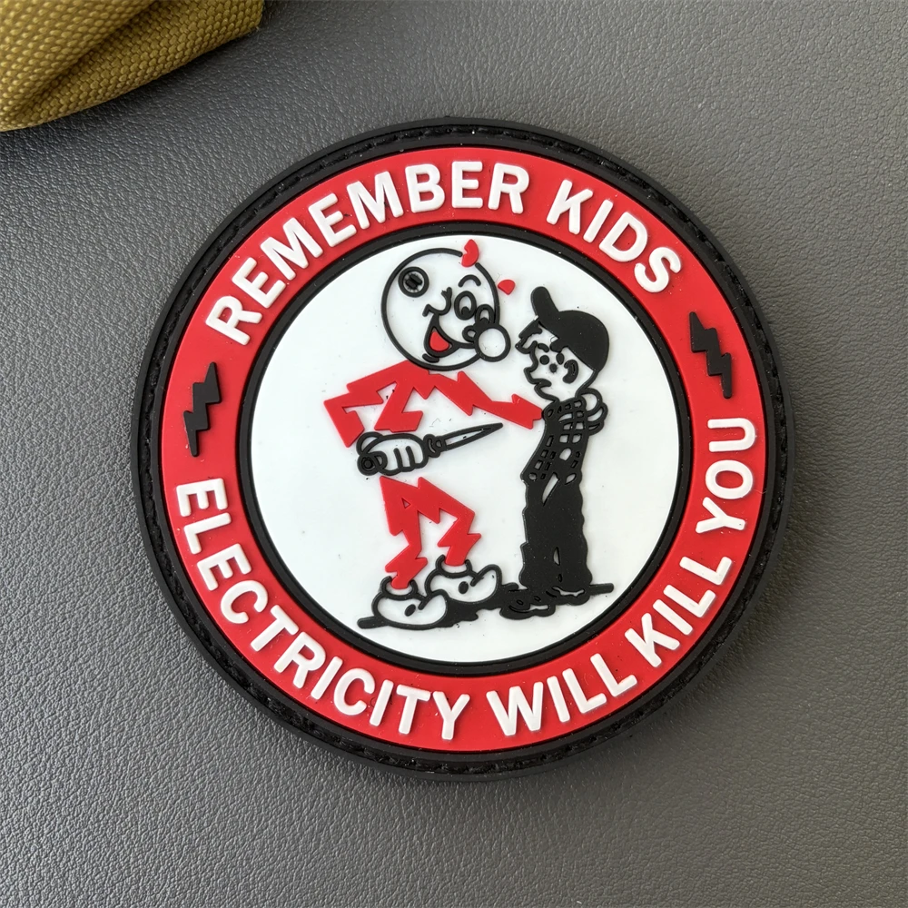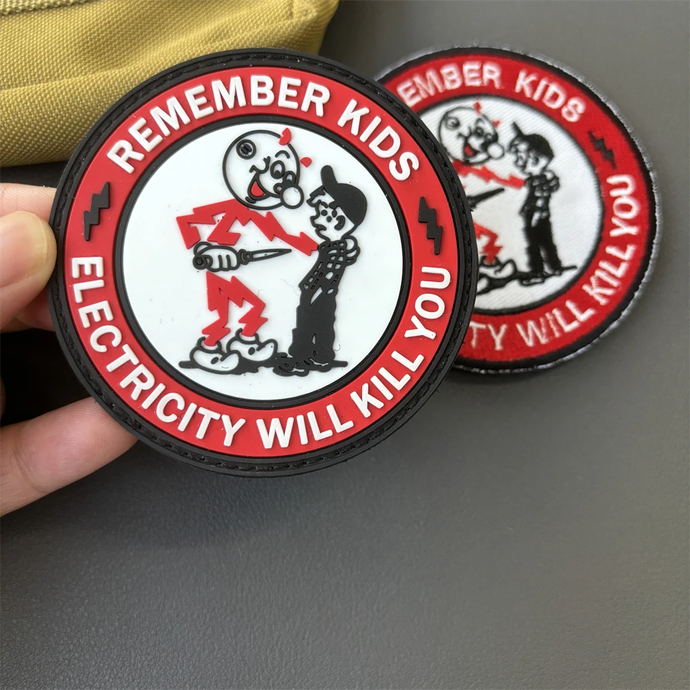 Recuerde que la electricidad de los niños lo matará, insignia bordada en la ropa, cierre de gancho y bucle, recordatorio, parches de advertencia, regalo para niñosNOTA: