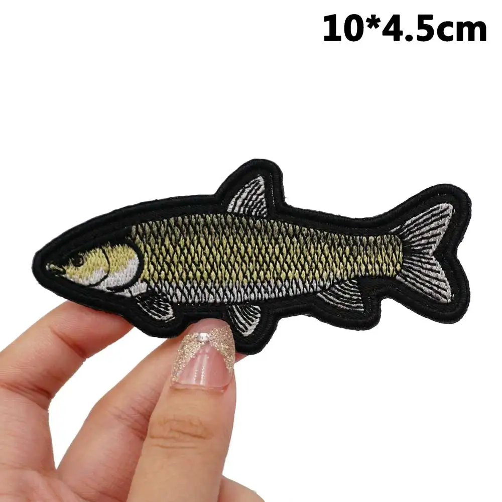 Insignia de carpa plateada, apliques bordados, etiqueta de costura, parches de motorista punk con respaldo de gancho