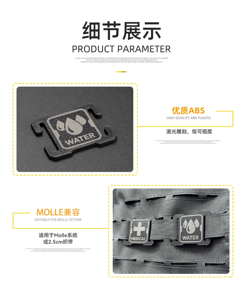 Insignia de etiqueta de material Molle de baja visibilidad, 6 piezas, chaleco montado, insignia mágica dura táctica, accesorios de identificación, mochilas
