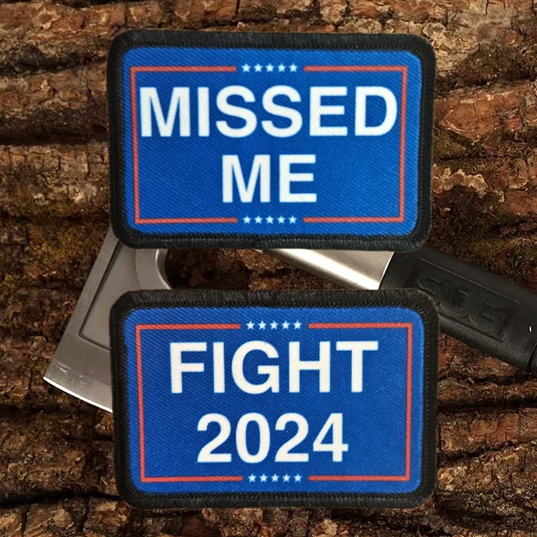 Trump 2024 bandera MISSED ME FIGHT 2024 insignia de moral parches impresos brazalete táctico mochila pegatinas de gancho y bucle