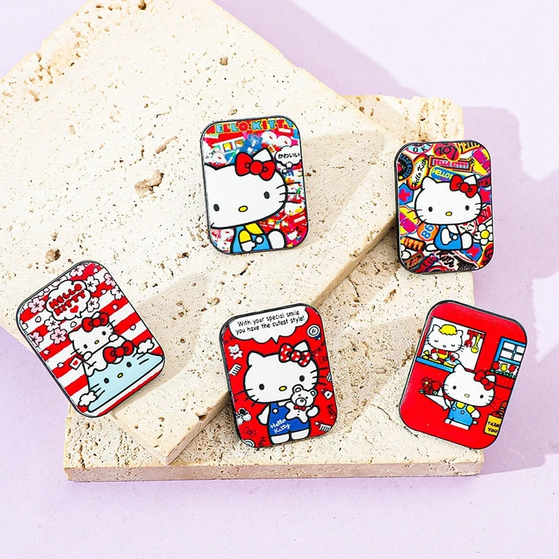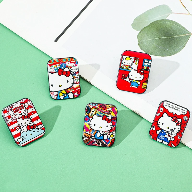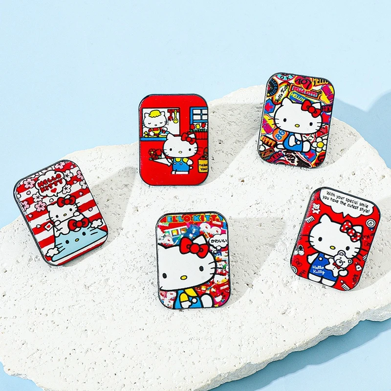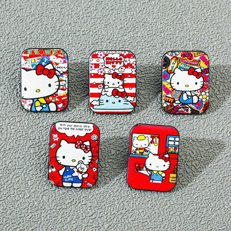 Insignia de metal de Hello Kitty de dibujos animados japoneses, broche y pin impreso de aleación de gato lindo Sanrio, decoración creativa, regalos de Festival