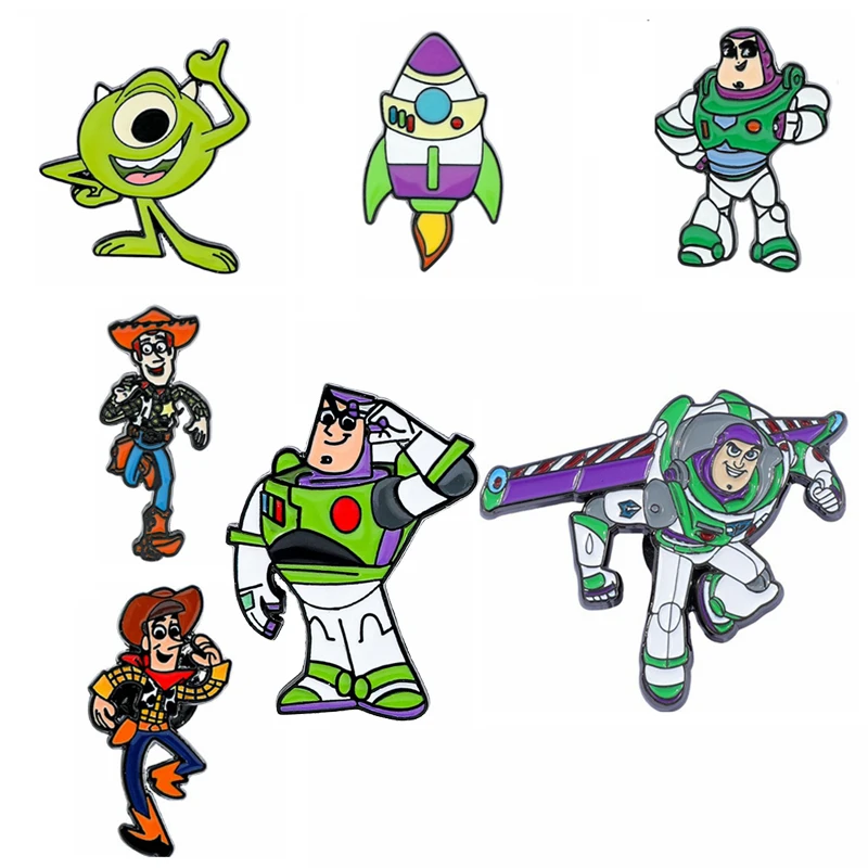 Insignia de Metal de Toy Story animada de Disney, broche de aceite de goteo de aleación de Buzz Lightyear, accesorios de ropa para niños, regalo de Festival
