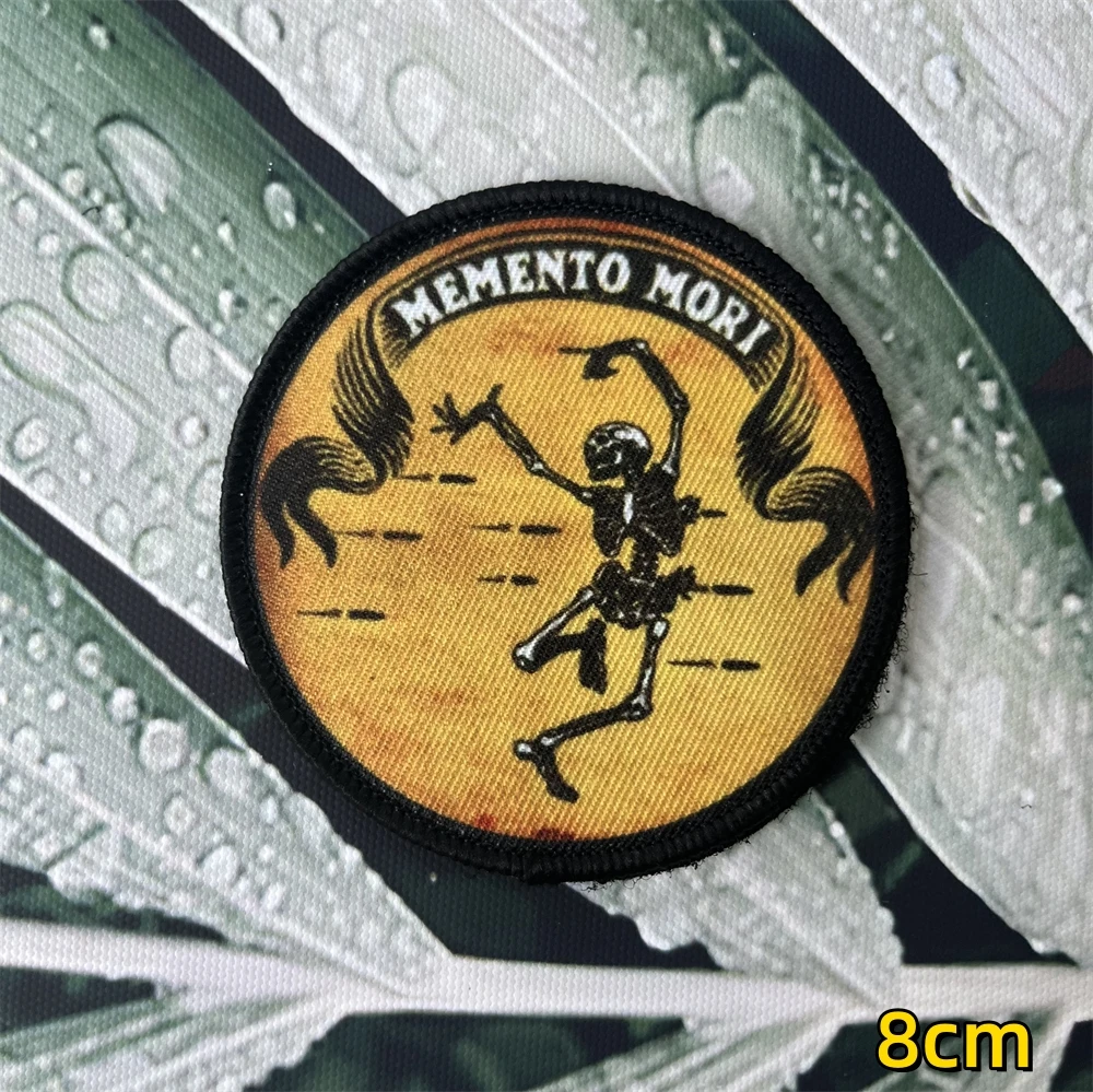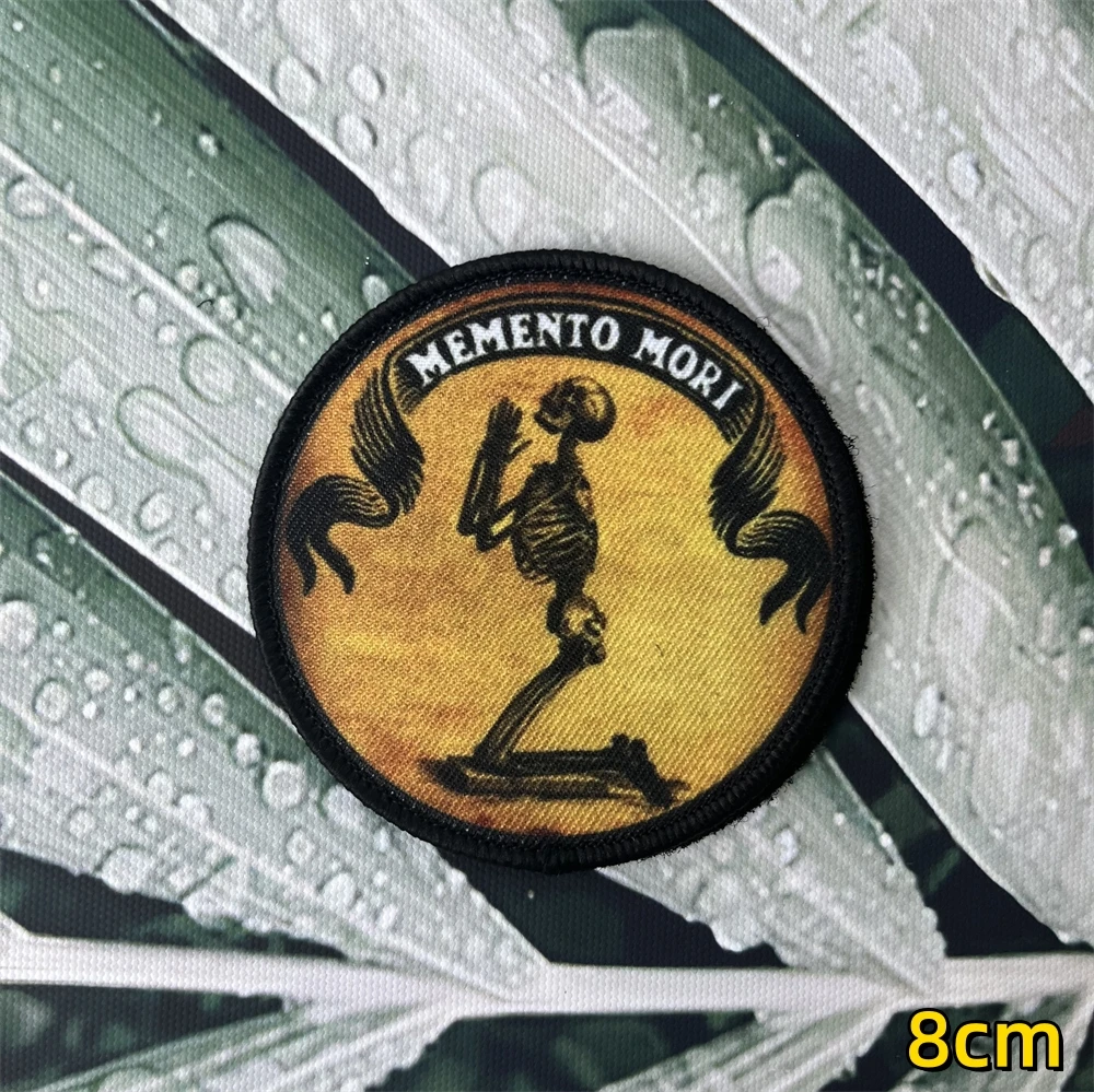 Insignia militar con calavera muerta pero todavía cormada, memento Mori, oración, parche impreso moral, parches tácticos, pegatinas para mochila