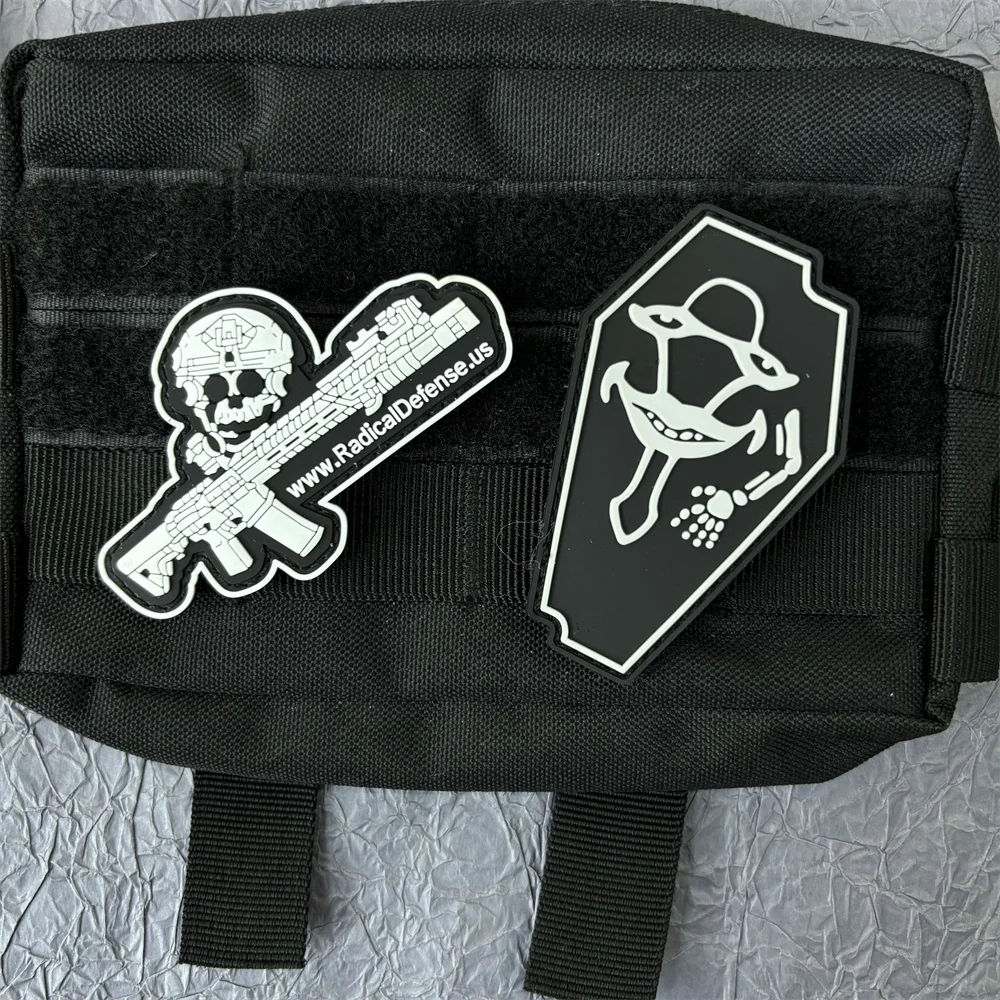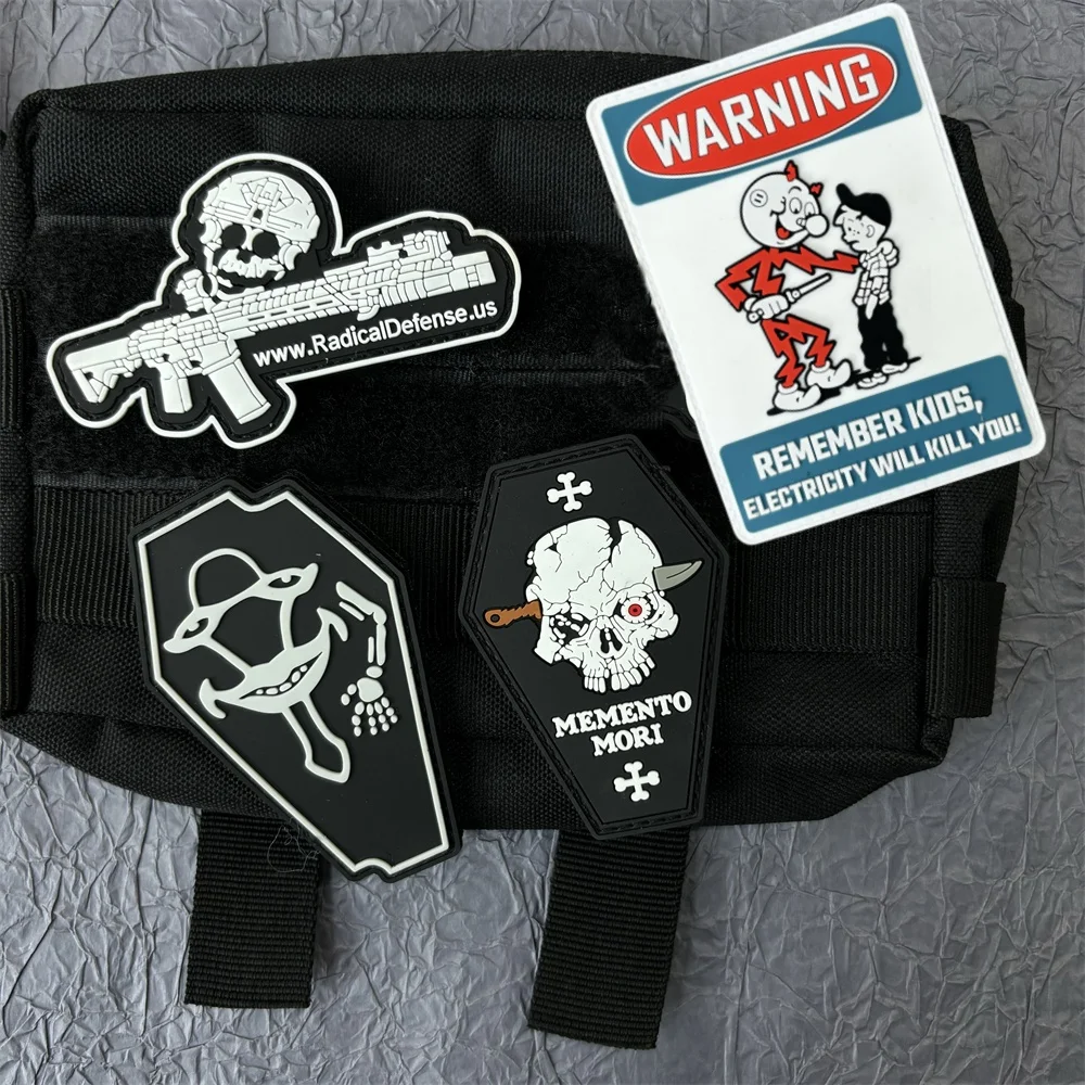 "ADVERTENCIA" Insignia de moral MEMENTO MORI Parche de PVC en ropa Punk Parches tácticos militares Pegatinas para mochila