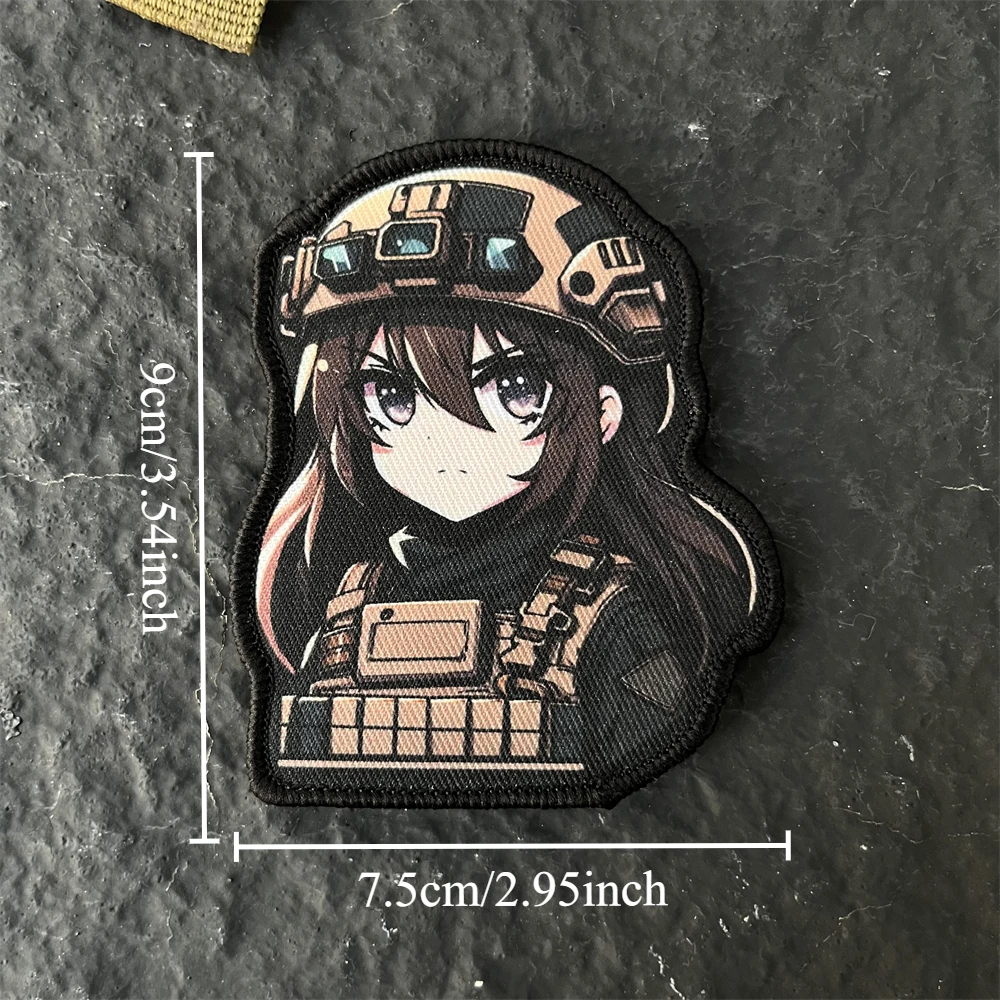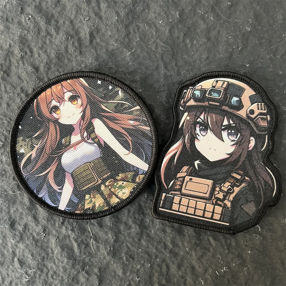 Insignia de moral de Anime japonés, parche de gancho y bucle estampado bidimensional para chica, pegatina decorativa para mochila táctica