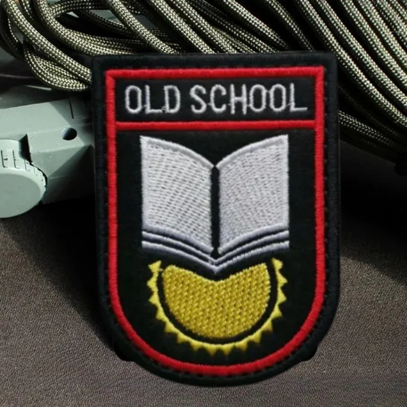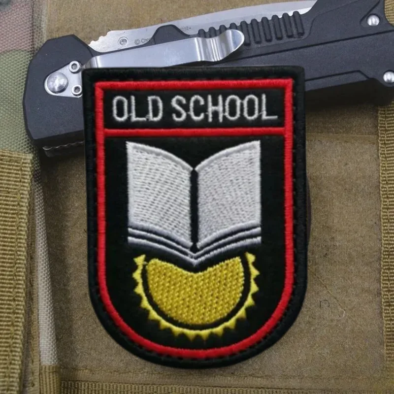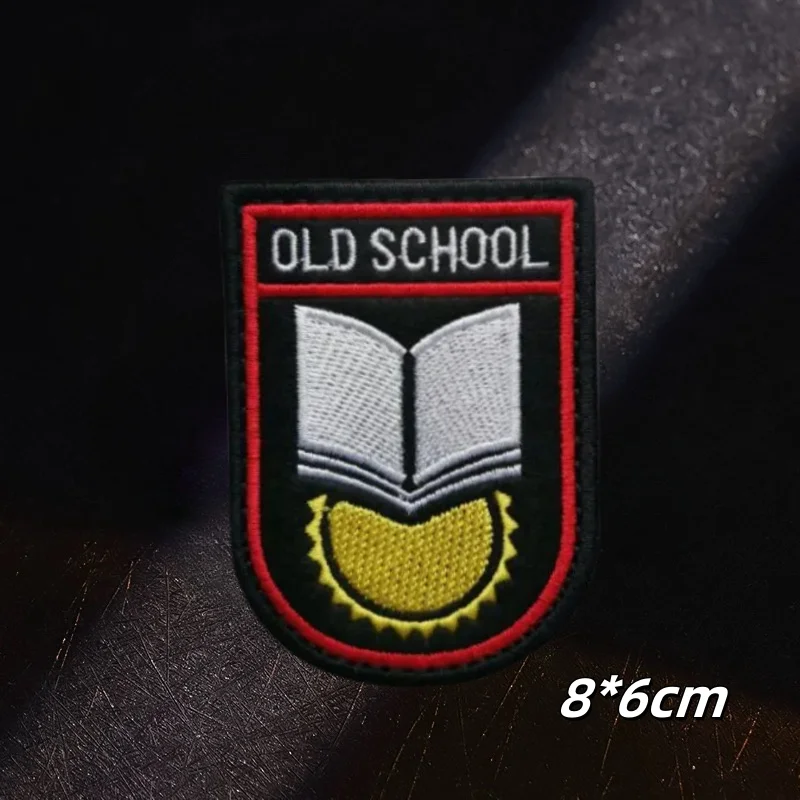 Libros de la "vieja escuela", insignia de moral bordada, parches tácticos de gancho y bucle, emblema, brazalete militar, pegatinas para mochila