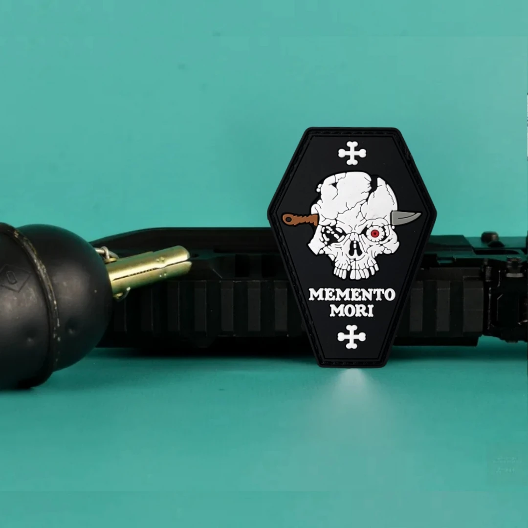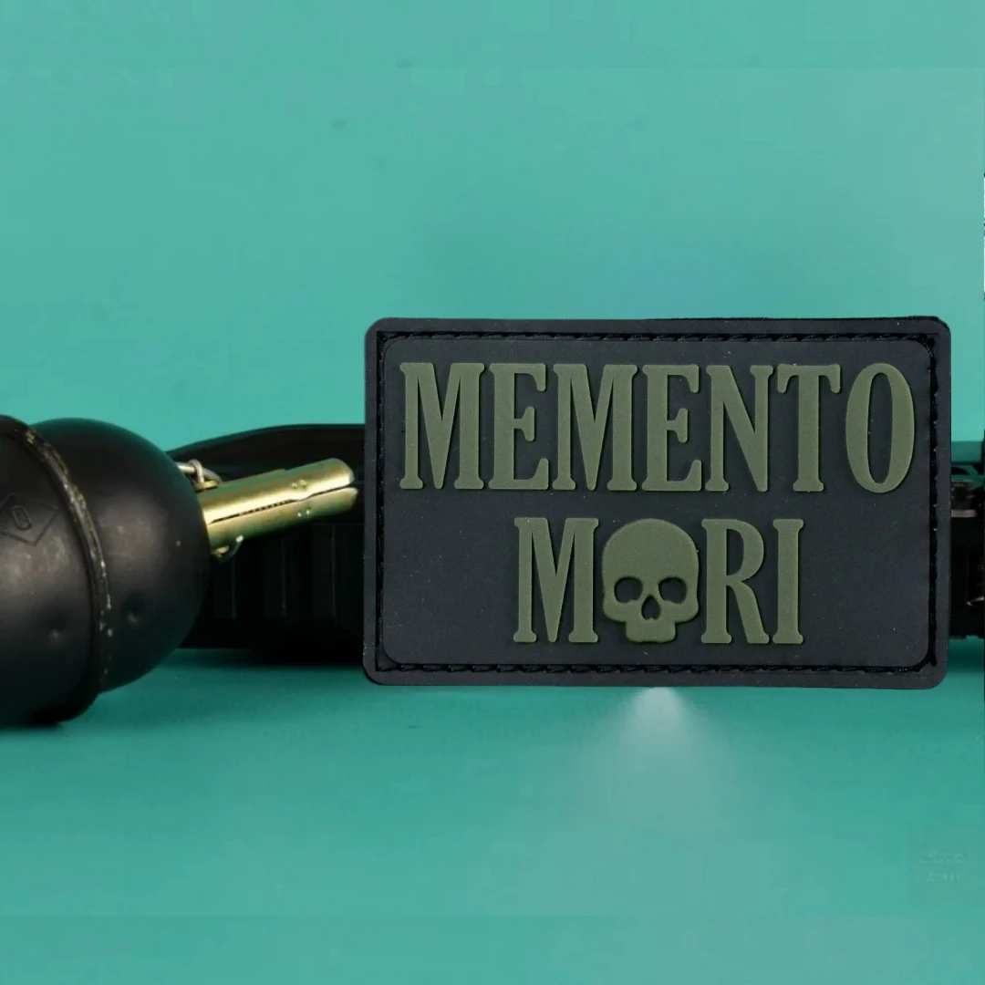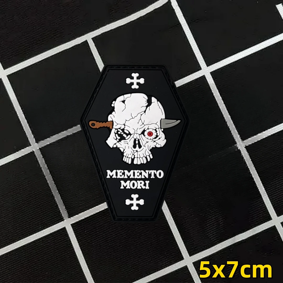 Parche táctico con insignia de moral de calavera "Memento Mori", brazalete militar, parches de gancho y bucle de PVC para ropa, pegatina para mochila