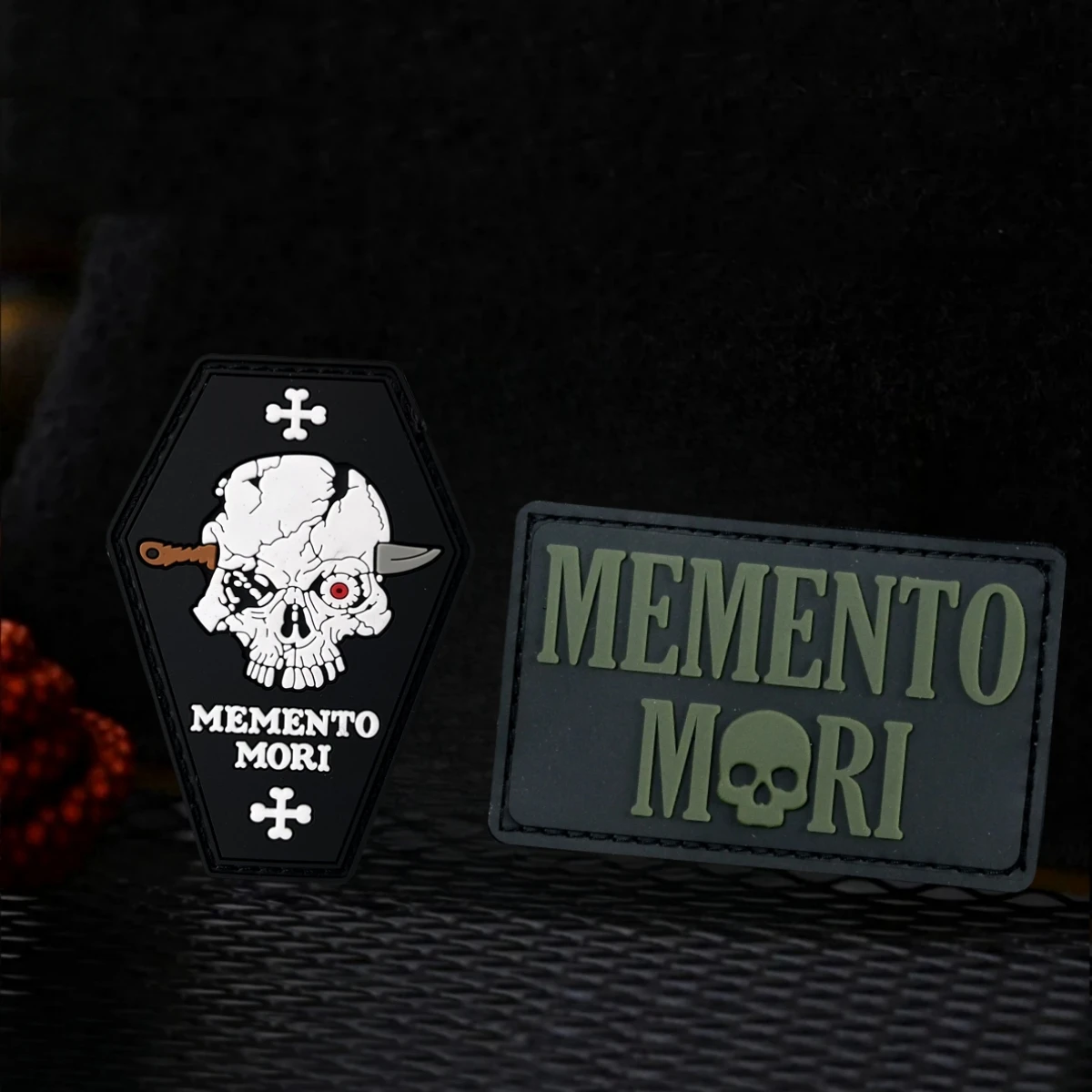 Parche táctico con insignia de moral de calavera "Memento Mori", brazalete militar, parches de gancho y bucle de PVC para ropa, pegatina para mochila