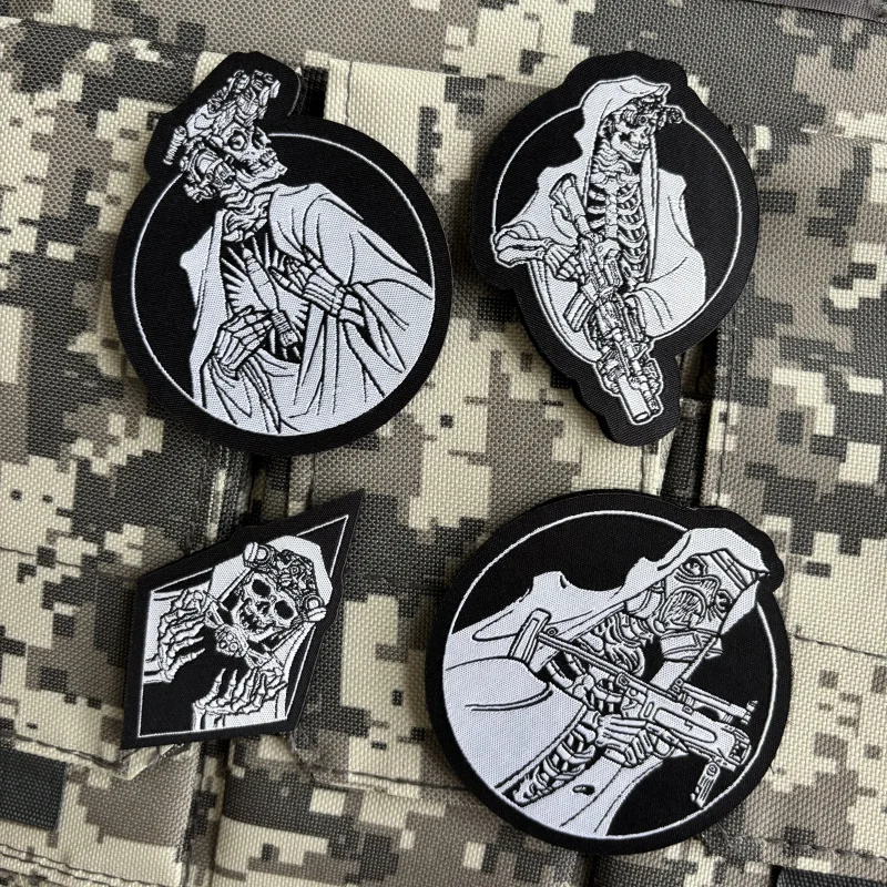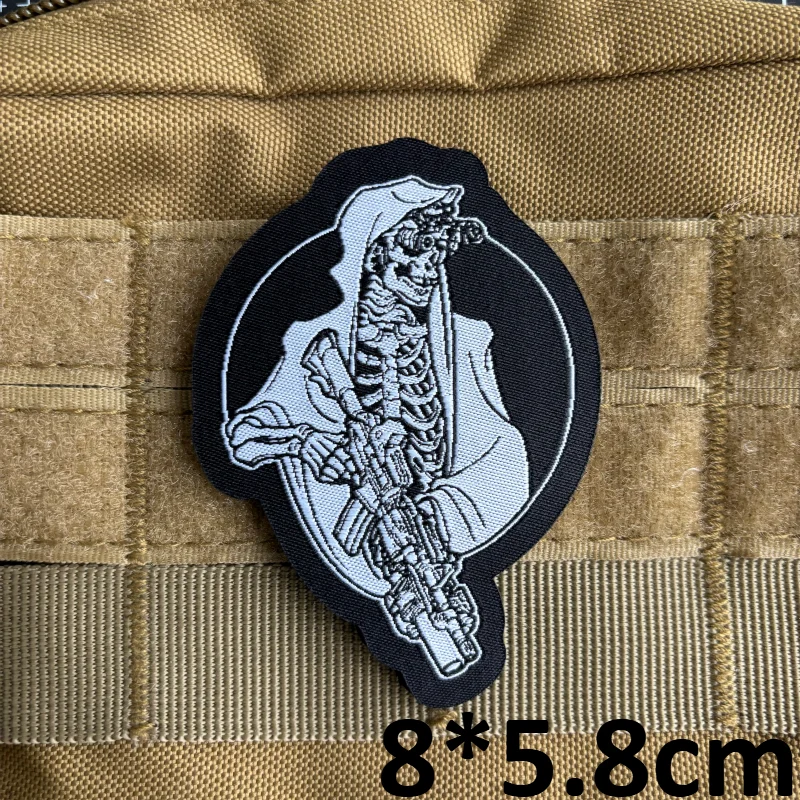 Reaper Skull Moral Badge Bordado Parche táctico Esqueleto Soldado Gancho y bucle Brazalete militar Mochila Muerte Pegatina