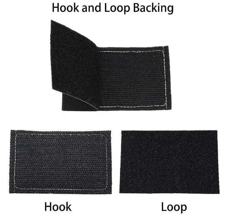 6. Parte posterior: Si es un gancho y bucle, péguelo directamente en la superficie del bucle. Por favor, planchelo en su ropa con hierro si hay pegamento en la parte posterior. También puede coser algunas puntadas simples después del planchado si puede, lo hace más firme y duradero. Si no tiene pegamento, cóselo en su ropa.