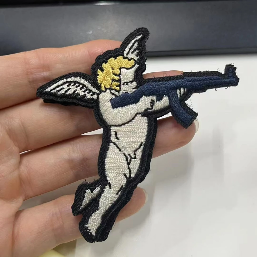 Parches bordados con insignia de moral de Cupido de combate, brazalete táctico, pegatina para mochila