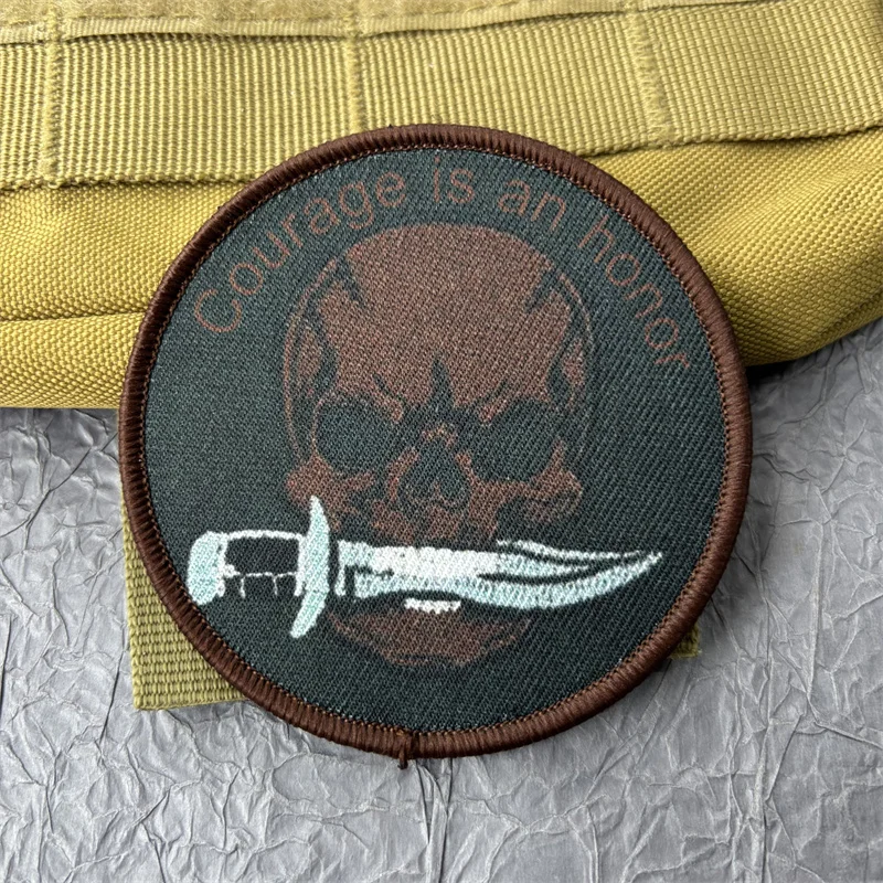 Cráneo Courage Honor, insignia de moral de doble bajo, parche táctico en ropa, parches de bucle de gancho, pegatina de brazalete militar para mochila