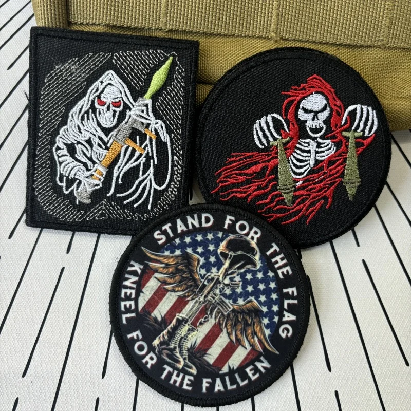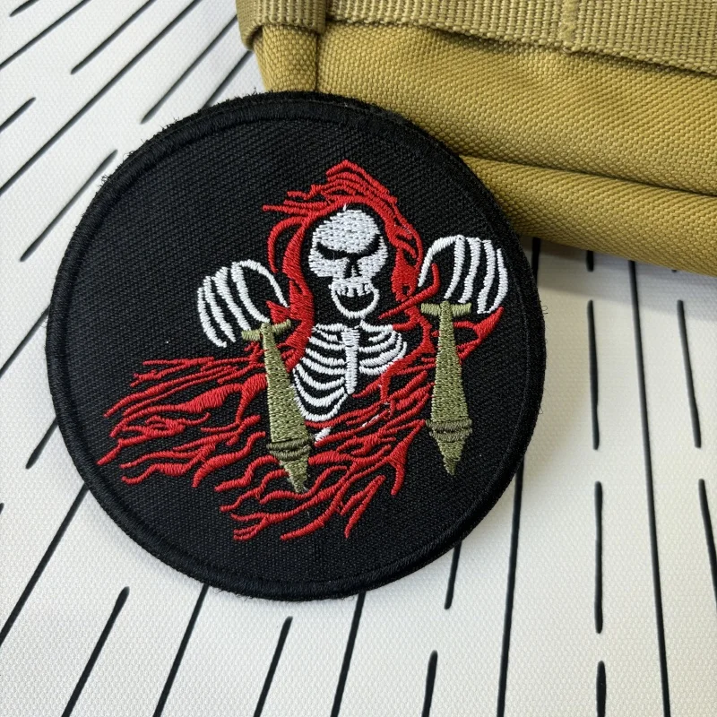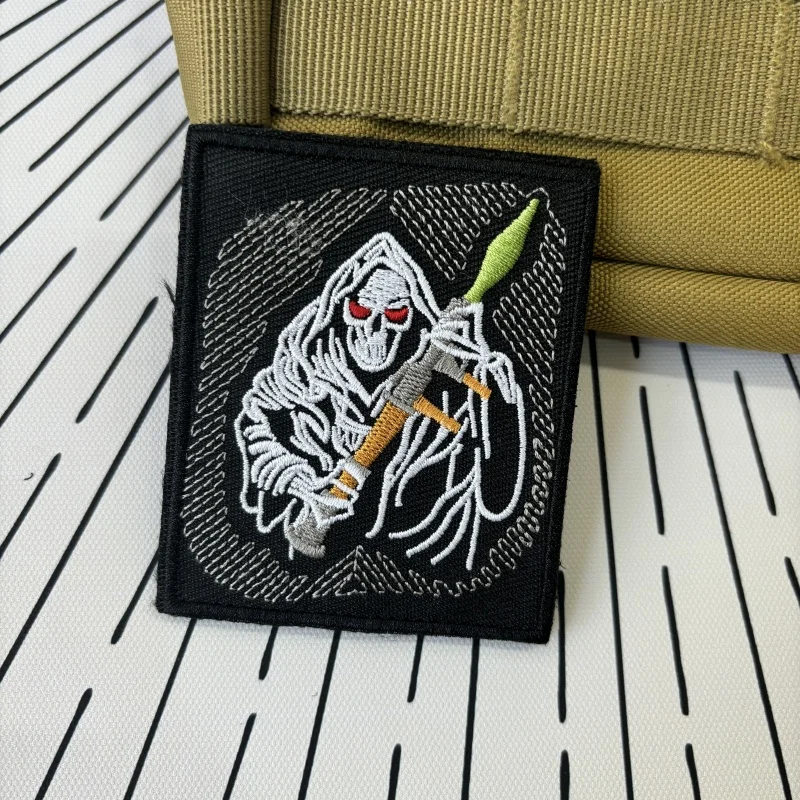 Insignia de moral Death Reaper, brazalete militar, calavera con parche táctico de misil, bordado de gancho y bucle, emblema, pegatina de mochila de combate