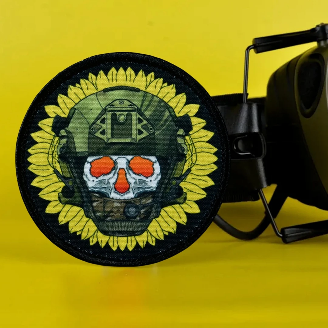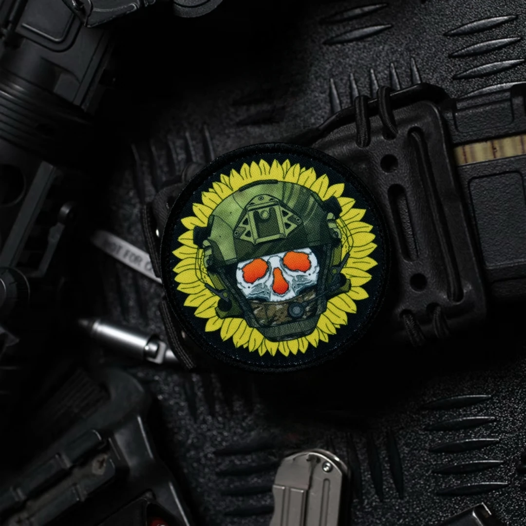 Insignia de moral del comandante del esqueleto del girasol, parches tácticos de gancho y bucle, mochila, brazalete militar, pegatinas con estampado de calavera