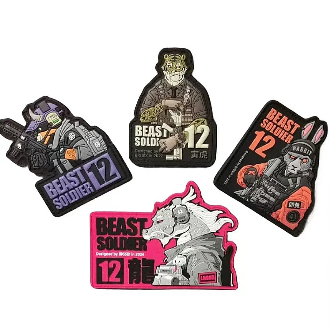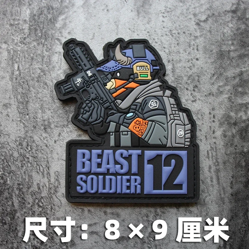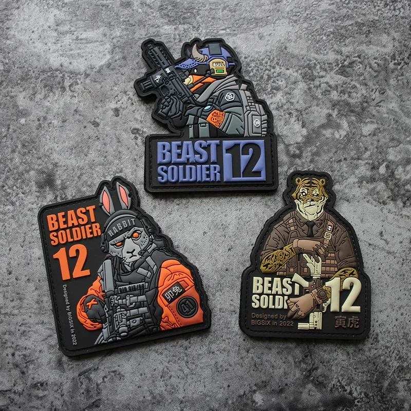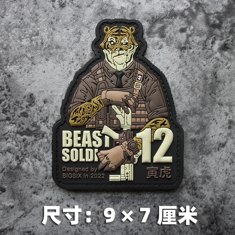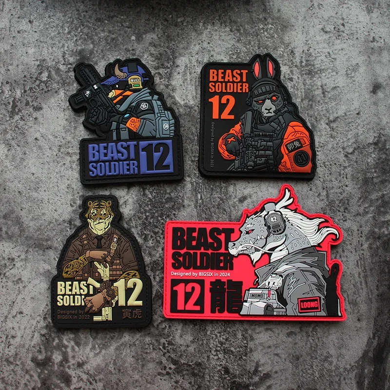 Insignia de Moral del guerrero de la bestia del zodiaco, Loong chino, dragón, Tigre, conejo y vaca, parches de PVC, mochila táctica, pegatina decorativa
