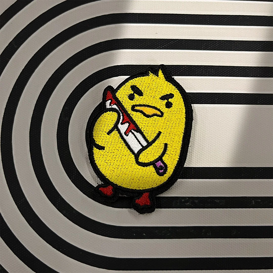 La insignia de la moral del pequeño pato amarillo con un cuchillo Bordado de animales Parches de gancho Mochila táctica Pegatinas de decoración