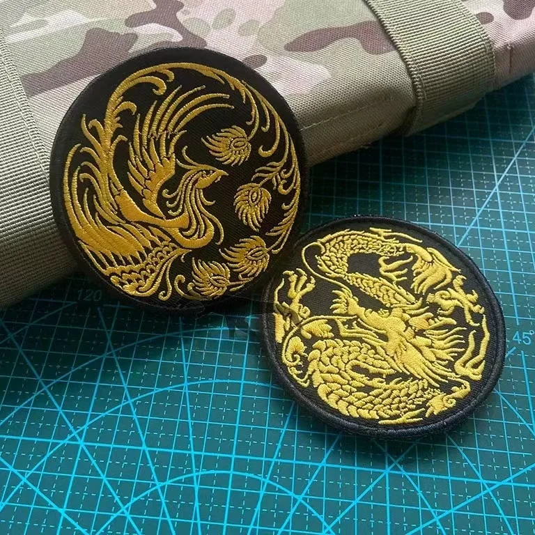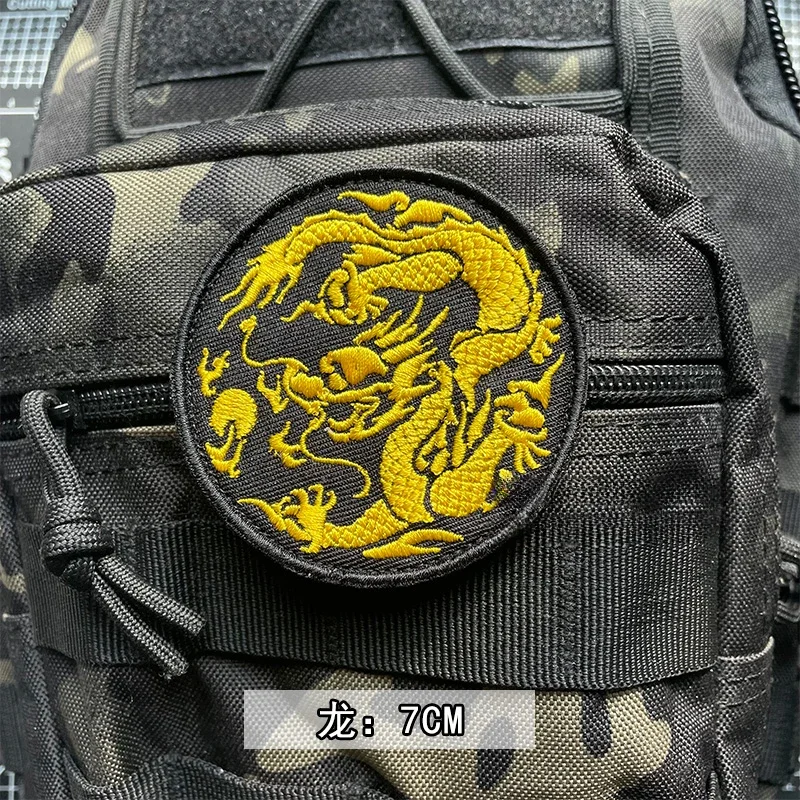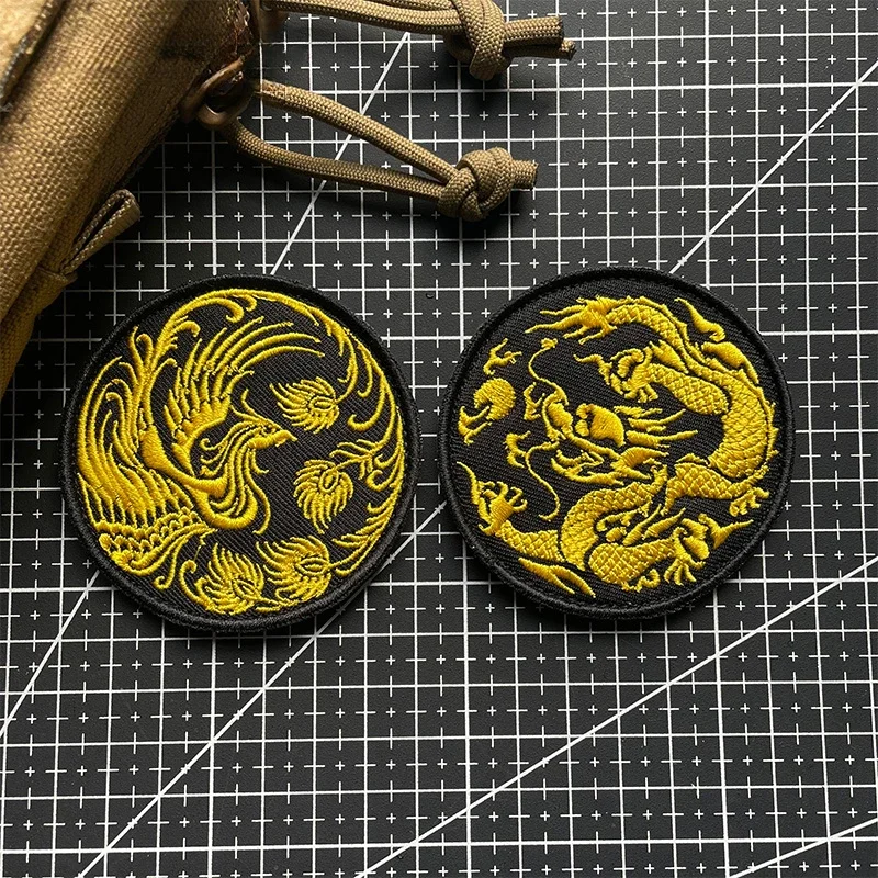 Insignia de moral de Dragon and Phoenix Bring Good Fortune, Loong chino bordado, parches de gancho y bucle, brazalete táctico, pegatinas de mochila