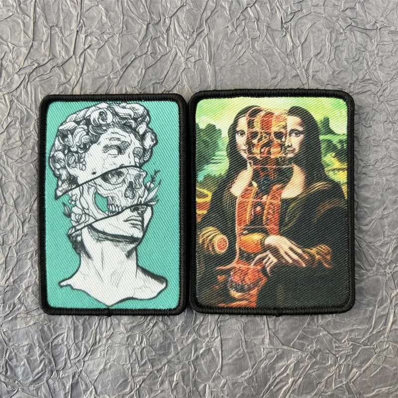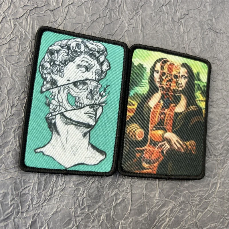 Mona Lisa, insignia de moral en capas, estatua de David, parche impreso en ropa, gancho y bucle, parches tácticos militares, mochila